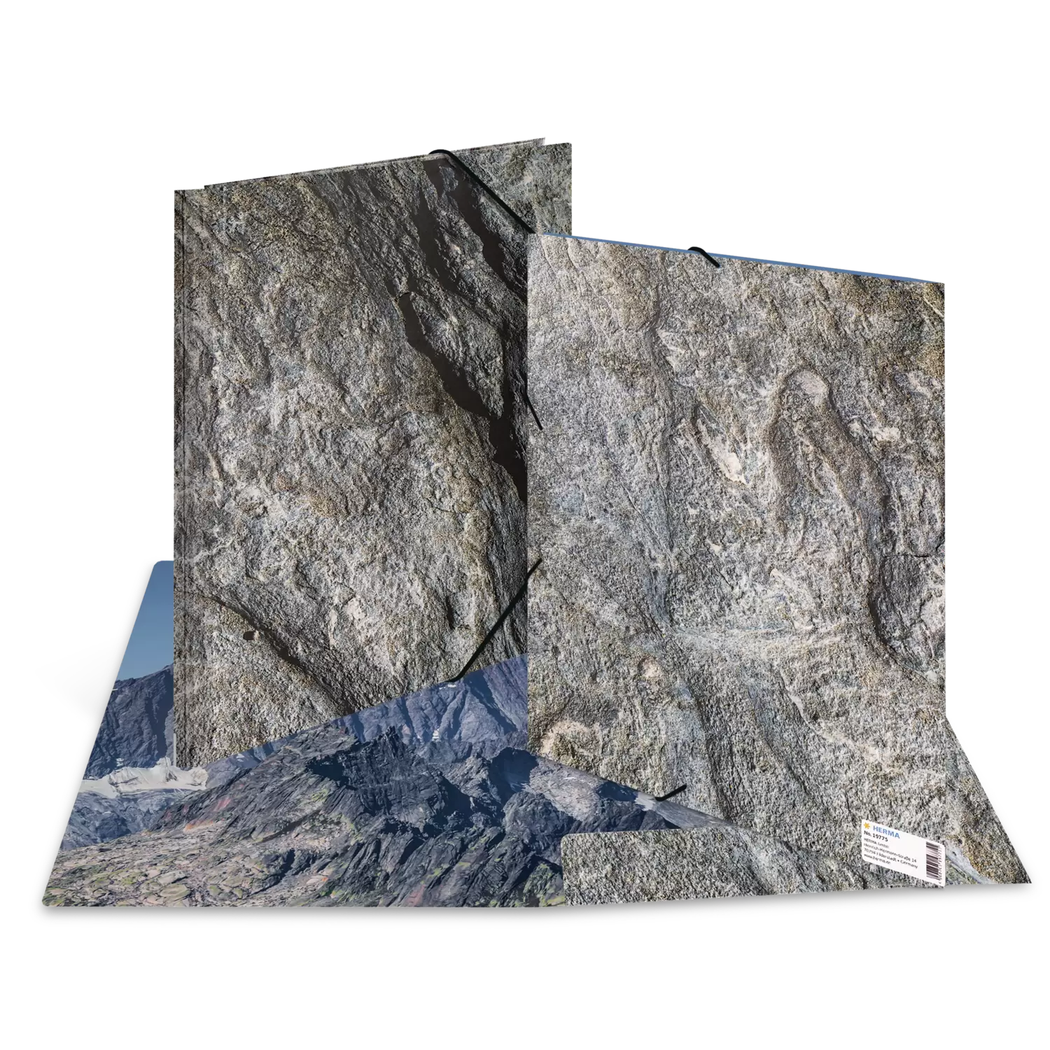 Nature is a master artist. Her overwhelming power and delicate beauty are on permanent display in cavernous gorges, towering mountains, endless rolling oceans and trees that touch the sky. HERMA's "Nature" deluxe elasticated folder series demonstrates this artistic balance of nature. They are adorned with rugged testaments to time that bear the brushstrokes of the ages. They are rough yet fragile, wild and unpredictable, and full of fine forms. They are an everlasting work of art, a fleeting moment, a glimpse into the age of eternal ice. The "Stone" elasticated folder displays the rough and rugged nature of rock and stone. There is an interplay of solid structures and gentle washed-out forms that are shaped by water and wind. They are both hard and soft because, no matter how seemingly unyielding, stone can still be conquered by the ravages of time. A highlight in the study, in the office or on the shelf. The high-quality finish makes this elegant folder a true high-end product. It is a tribute to nature – the greatest artist of all.