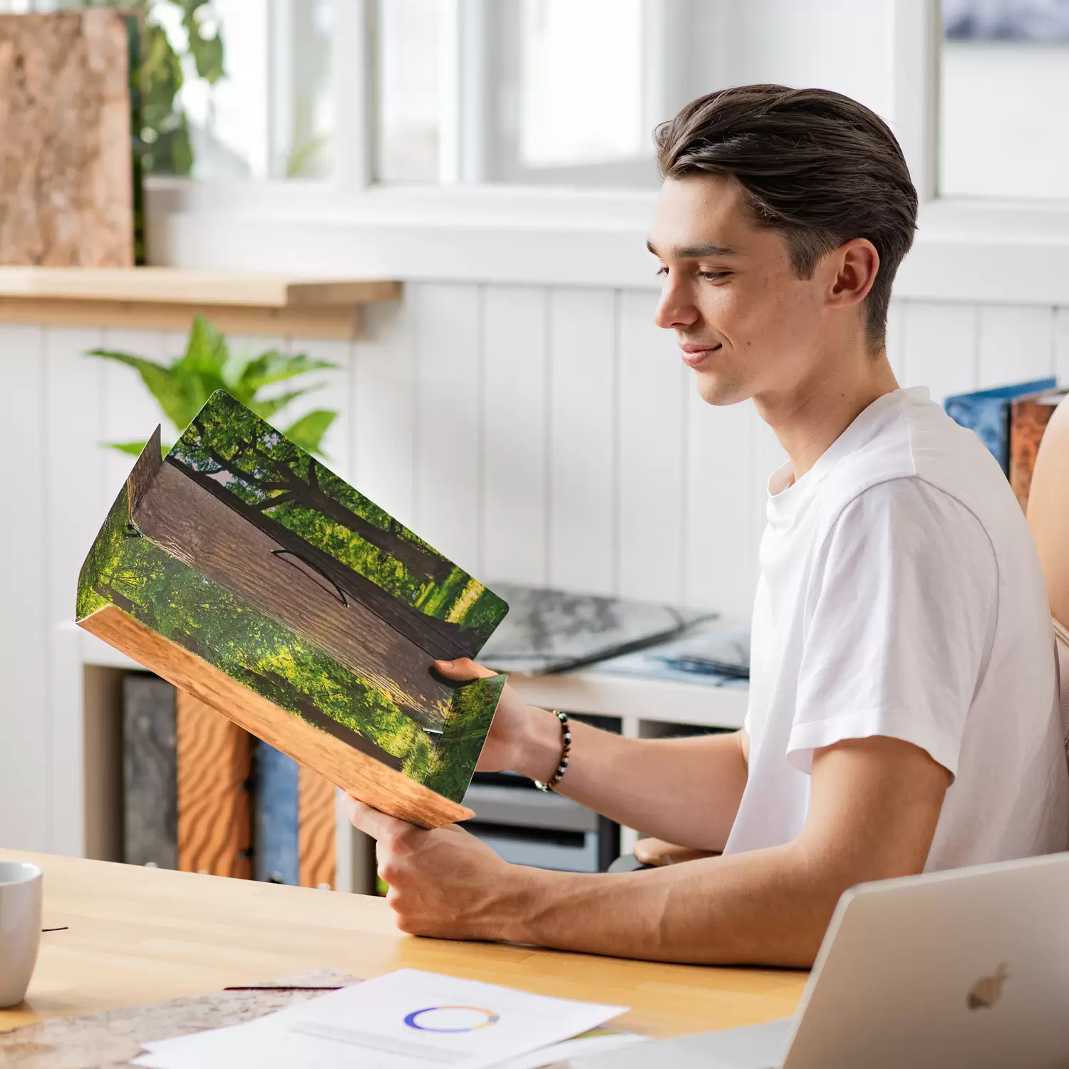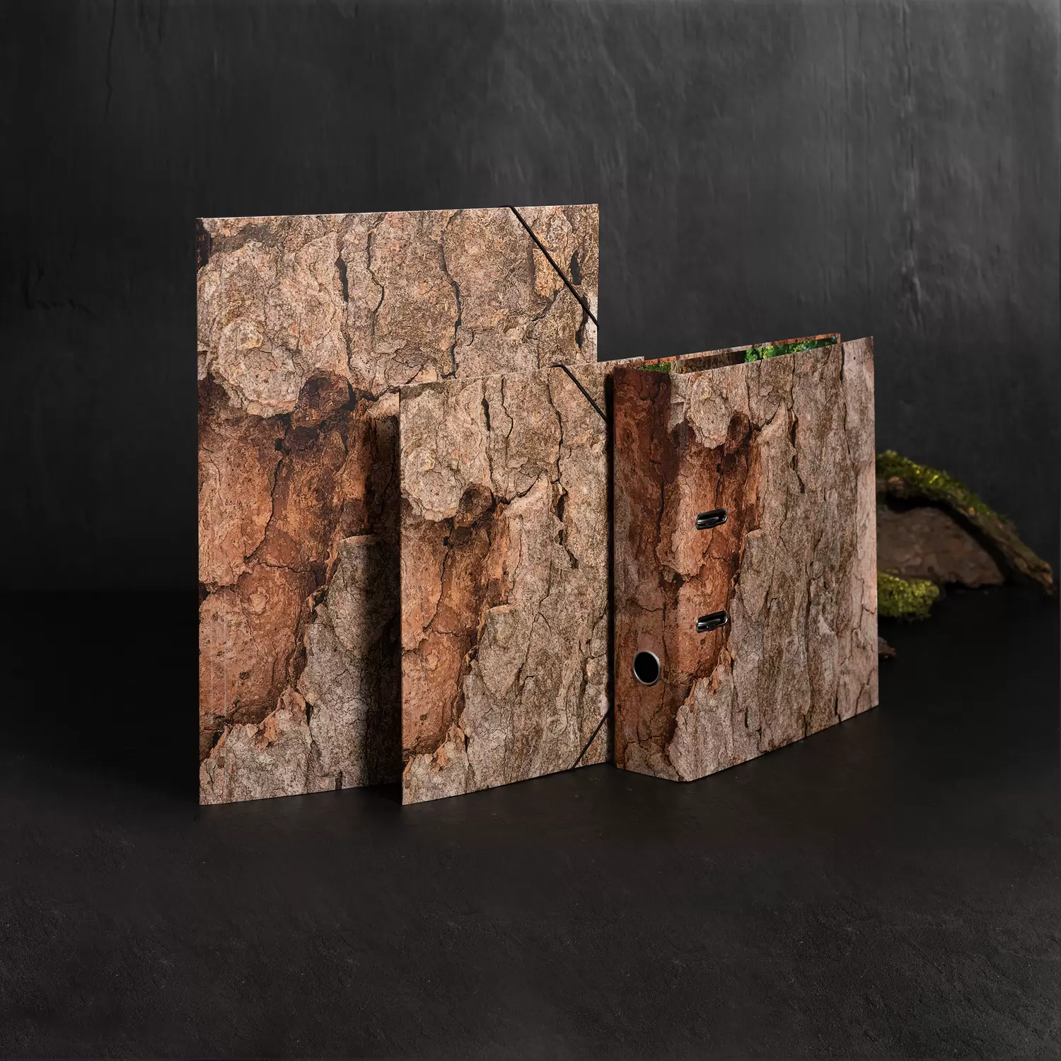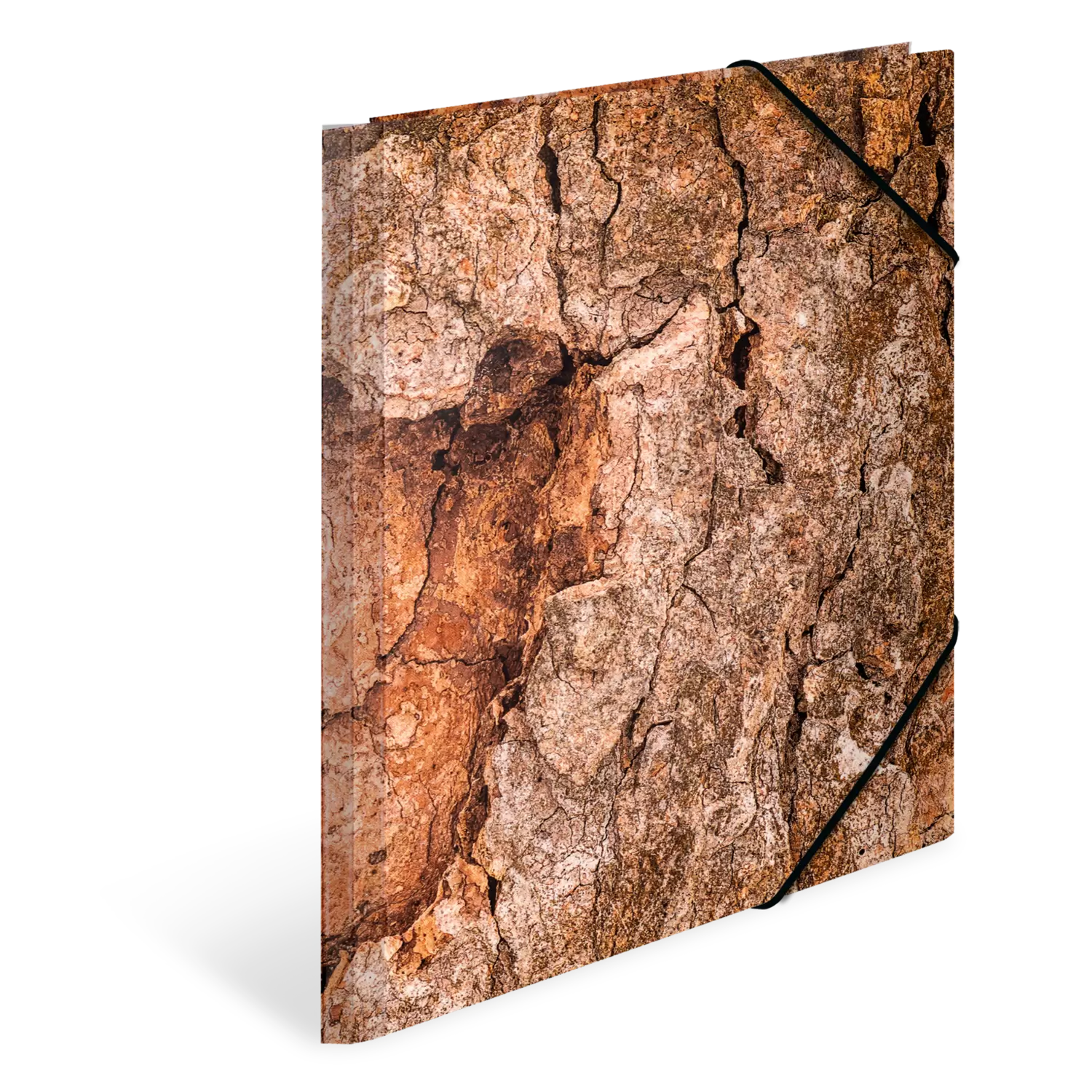 Nature is a master artist. Her overwhelming power and delicate beauty are on permanent display in cavernous gorges, towering mountains, endless rolling oceans and trees that touch the sky. HERMA's "Nature" deluxe elasticated folder series demonstrates this artistic balance of nature. They are adorned with rugged testaments to time that bear the brushstrokes of the ages. They are rough yet fragile, wild and unpredictable, and full of fine forms. They are an everlasting work of art, a fleeting moment, a glimpse into the age of eternal ice. The "Wood" elasticated folder shows the rough yet harmonious bark of an ancient tree. It has been furrowed and battered by wind and weather but remains steadfast and defiant. The natural shapes appear to melt into one another in a symbol of strength, fragility and everlasting life. A highlight in the study, in the office or on the shelf. The high-quality finish makes this elegant folder a true high-end product. It is a tribute to nature – the greatest artist of all.