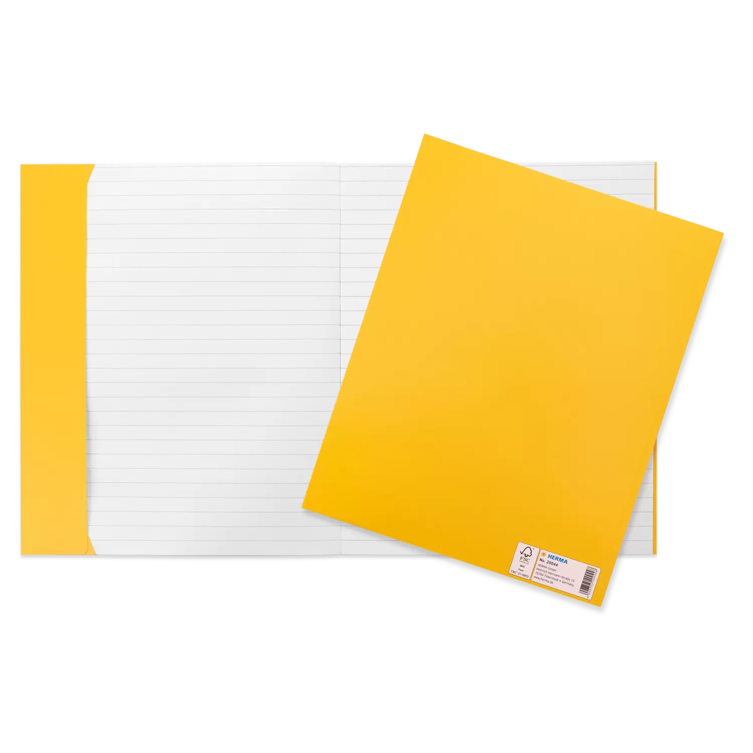These yellow exercise book covers from HERMA can be used for any exercise books in Quart size. They are perfect for work documents, exercise books and copybooks. Use them at school, university or work to protect your materials from damage and bending. Made of sturdy cardboard instead of plastic, HERMA exercise book covers are rugged and durable. The strong material, in proven HERMA quality, is friendlier to the environment than conventional plastic. The covers keep out dirt and moisture and keep the contents well protected. You have different colours to choose from. On the front is a highly visible inscription label for information on the owner or subject. The perfect way to stay tidy and well organised.