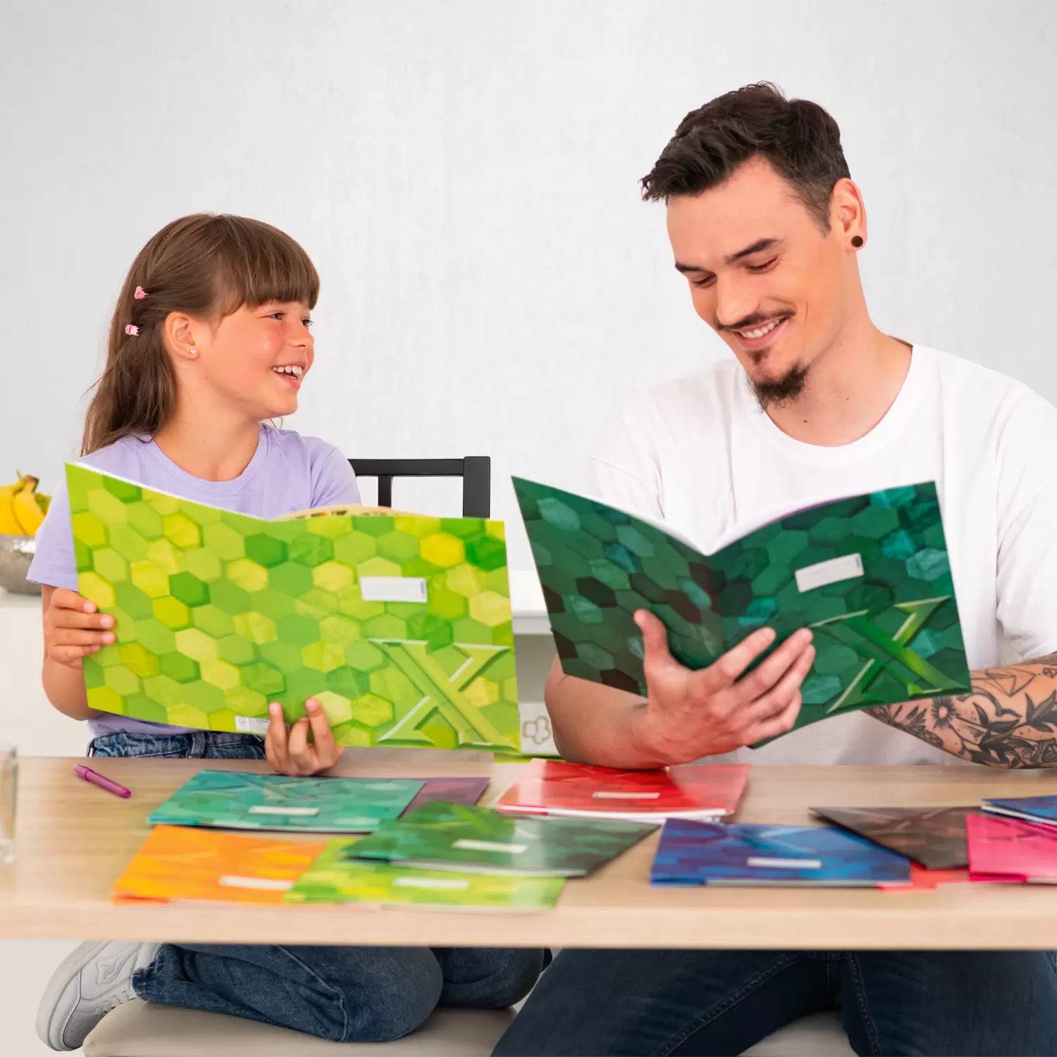 The HERMA exercise book cover X made of sturdy cardboard, is unique and mysterious. Does the bright, refined X on the front stand for the mathematics variable, as a code for a secret, for the creative element or as an unknown for the contents of the notebook which is protected? The exercise book cover Series X is not just a simple protective cover, but a gateway to a world of adventure and mystery, mystical and diverse. This exercise book cover X in light green is in A4 format and is decorated with artful hexagons, these are filled with fine leaf structures that create a fascinating organic structure. Looking at the cool design with the bright, refined X triggers creativity and brings easily thoughts on paper. Whether at school, while studying or during leisure time - this exercise book cover is the perfect companion for all those who are looking for something special: The new X series.