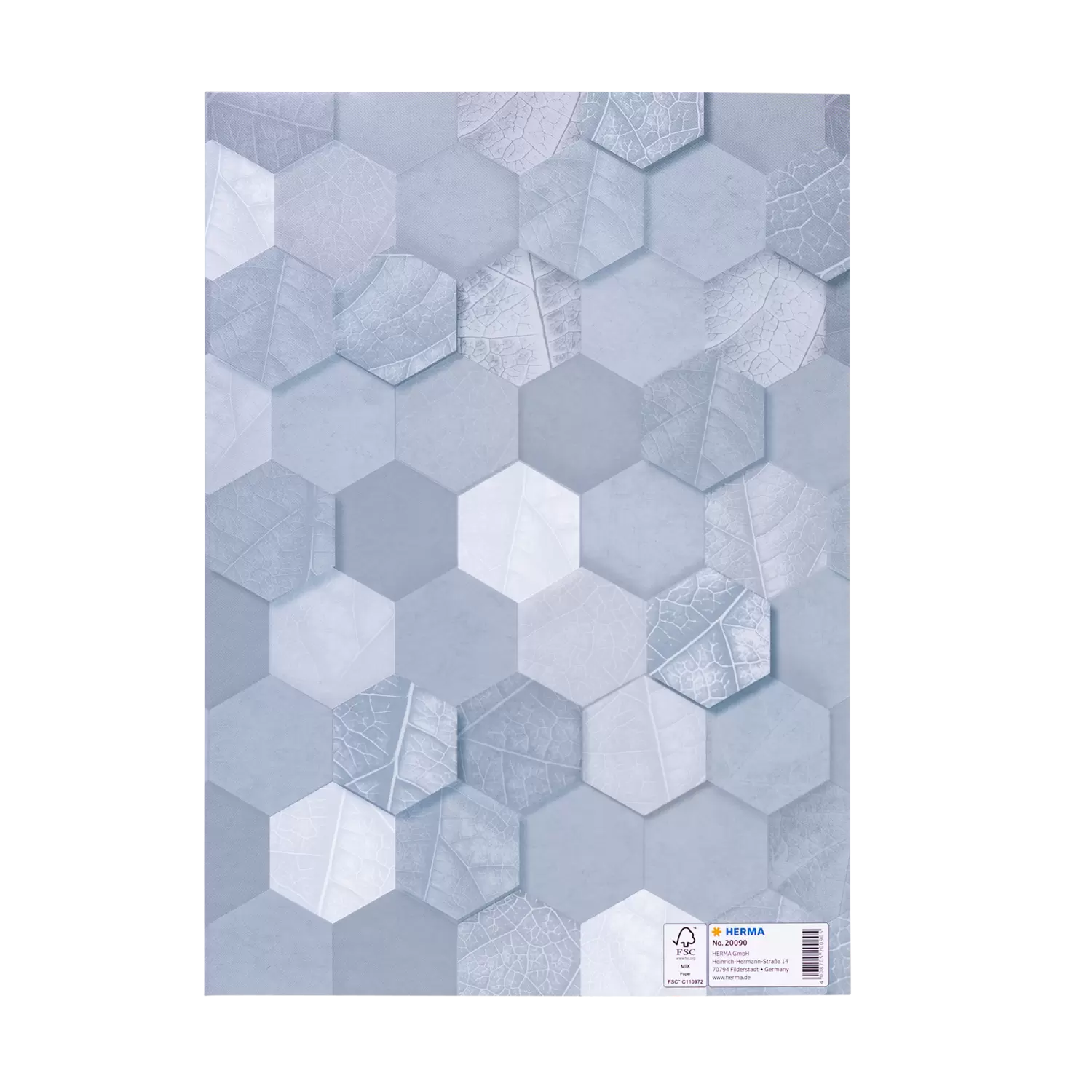 The HERMA exercise book cover X made of sturdy cardboard, is unique and mysterious. Does the bright, refined X on the front stand for the mathematics variable, as a code for a secret, for the creative element or as an unknown for the contents of the notebook which is protected? The exercise book cover Series X is not just a simple protective cover, but a gateway to a world of adventure and mystery, mystical and diverse. This grey exercise book cover X is in A4 format and is decorated with artful hexagons, these are filled with fine leaf structures that create a fascinating organic structure. Looking at the cool design with the bright, refined X triggers creativity and brings easily thoughts on paper. Whether at school, while studying or during leisure time - this exercise book cover is the perfect companion for all those who are looking for something special: The new X series.