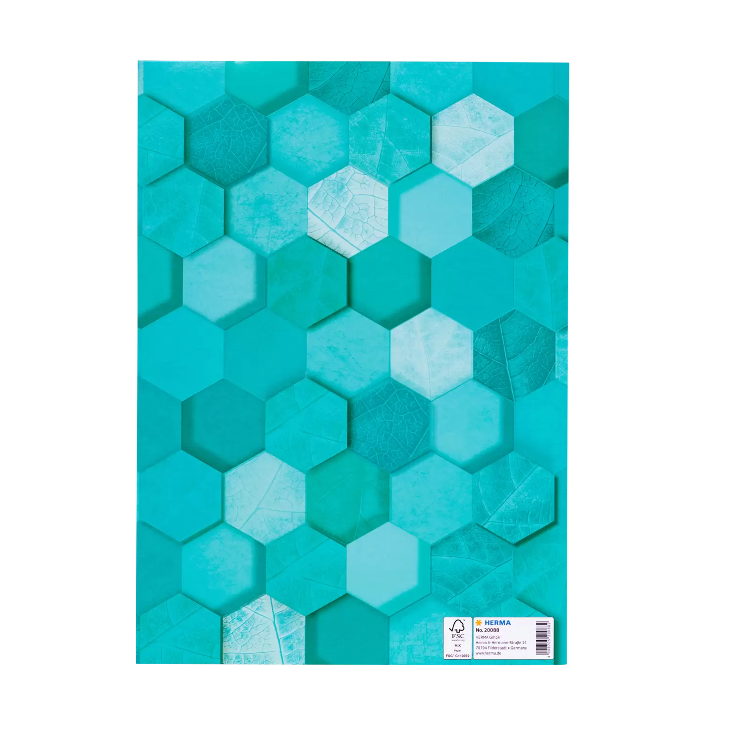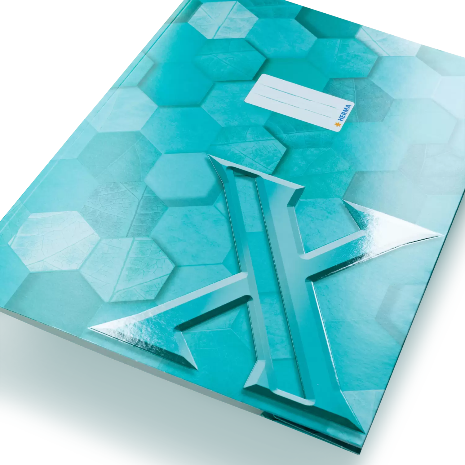The HERMA exercise book cover X made of sturdy cardboard, is unique and mysterious. Does the bright, refined X on the front stand for the mathematics variable, as a code for a secret, for the creative element or as an unknown for the contents of the notebook which is protected? The exercise book cover Series X is not just a simple protective cover, but a gateway to a world of adventure and mystery, mystical and diverse. This turquoise exercise book cover X is in A4 format and is decorated with artful hexagons, these are filled with fine leaf structures that create a fascinating organic structure. Looking at the cool design with the bright, refined X triggers creativity and brings easily thoughts on paper. Whether at school, while studying or during leisure time - this exercise book cover is the perfect companion for all those who are looking for something special: The new X series.
