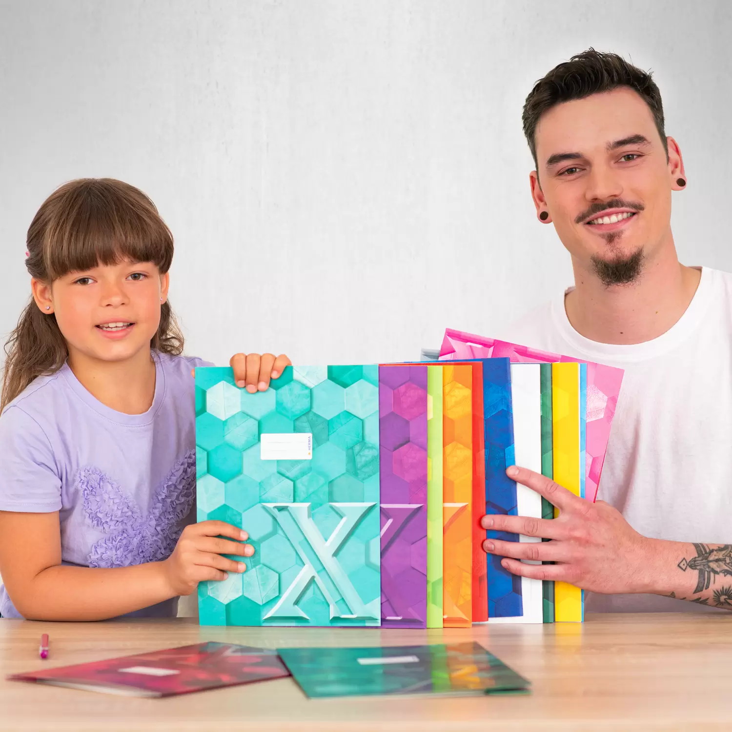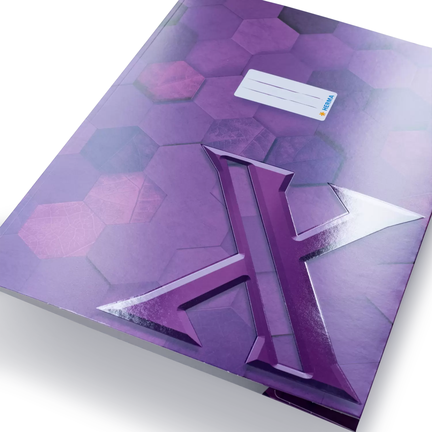 The HERMA exercise book cover X made of sturdy cardboard, is unique and mysterious. Does the bright, refined X on the front stand for the mathematics variable, as a code for a secret, for the creative element or as an unknown for the contents of the notebook which is protected? The exercise book cover Series X is not just a simple protective cover, but a gateway to a world of adventure and mystery, mystical and diverse. This violet exercise book cover X is in A4 format and is decorated with artful hexagons, these are filled with fine leaf structures that create a fascinating organic structure. Looking at the cool design with the bright, refined X triggers creativity and brings easily thoughts on paper. Whether at school, while studying or during leisure time - this exercise book cover is the perfect companion for all those who are looking for something special: The new X series.