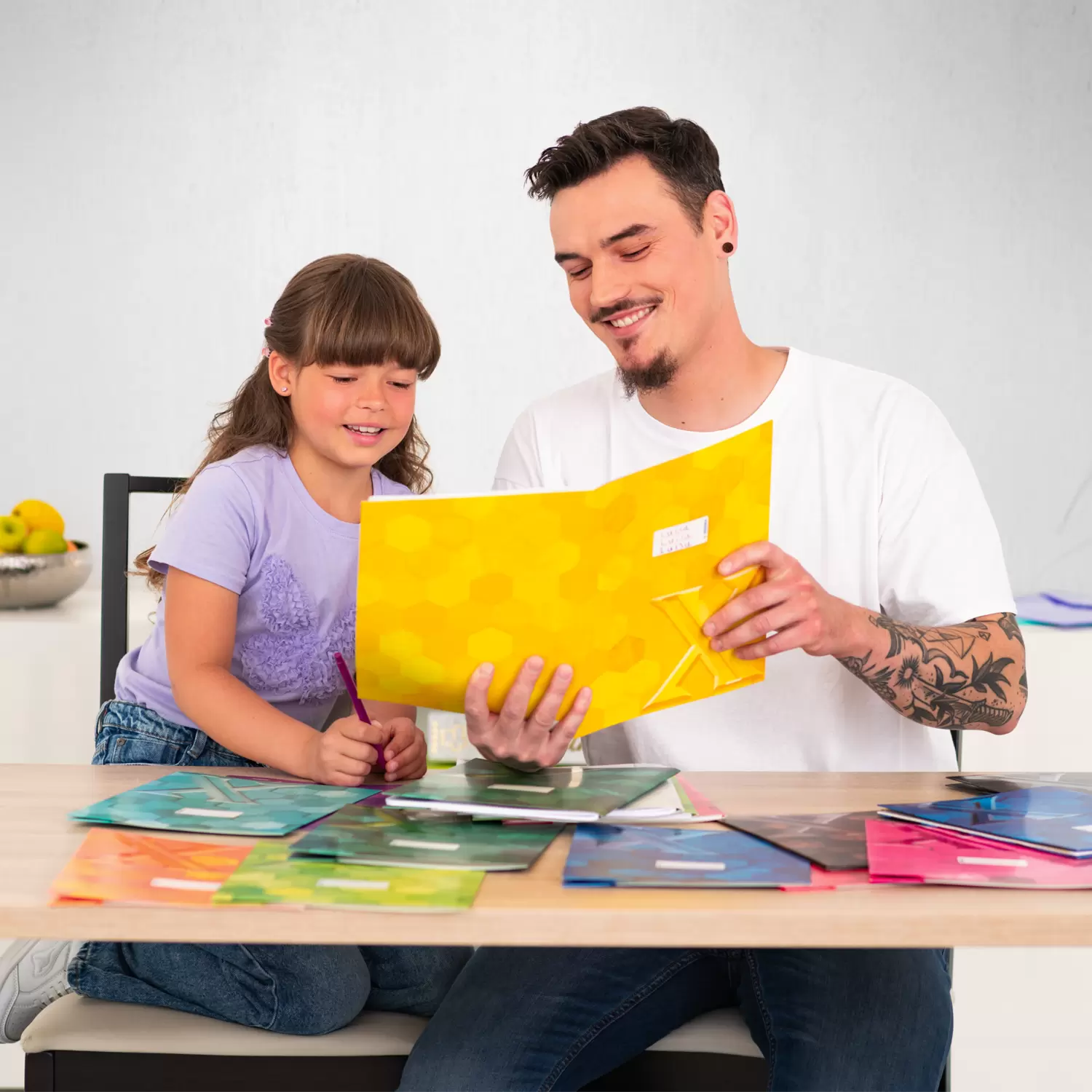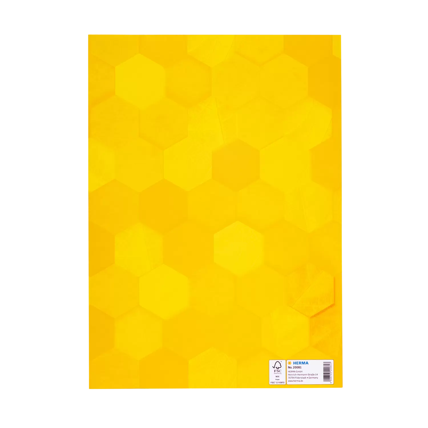The HERMA exercise book cover X made of sturdy cardboard, is unique and mysterious. Does the bright, refined X on the front stand for the mathematics variable, as a code for a secret, for the creative element or as an unknown for the contents of the notebook which is protected? The exercise book cover Series X is not just a simple protective cover, but a gateway to a world of adventure and mystery, mystical and diverse. This yellow exercise book cover X is in A4 format and is decorated with artful hexagons, these are filled with fine leaf structures that create a fascinating organic structure. Looking at the cool design with the bright, refined X triggers creativity and brings easily thoughts on paper. Whether at school, while studying or during leisure time - this exercise book cover is the perfect companion for all those who are looking for something special: The new X series.
