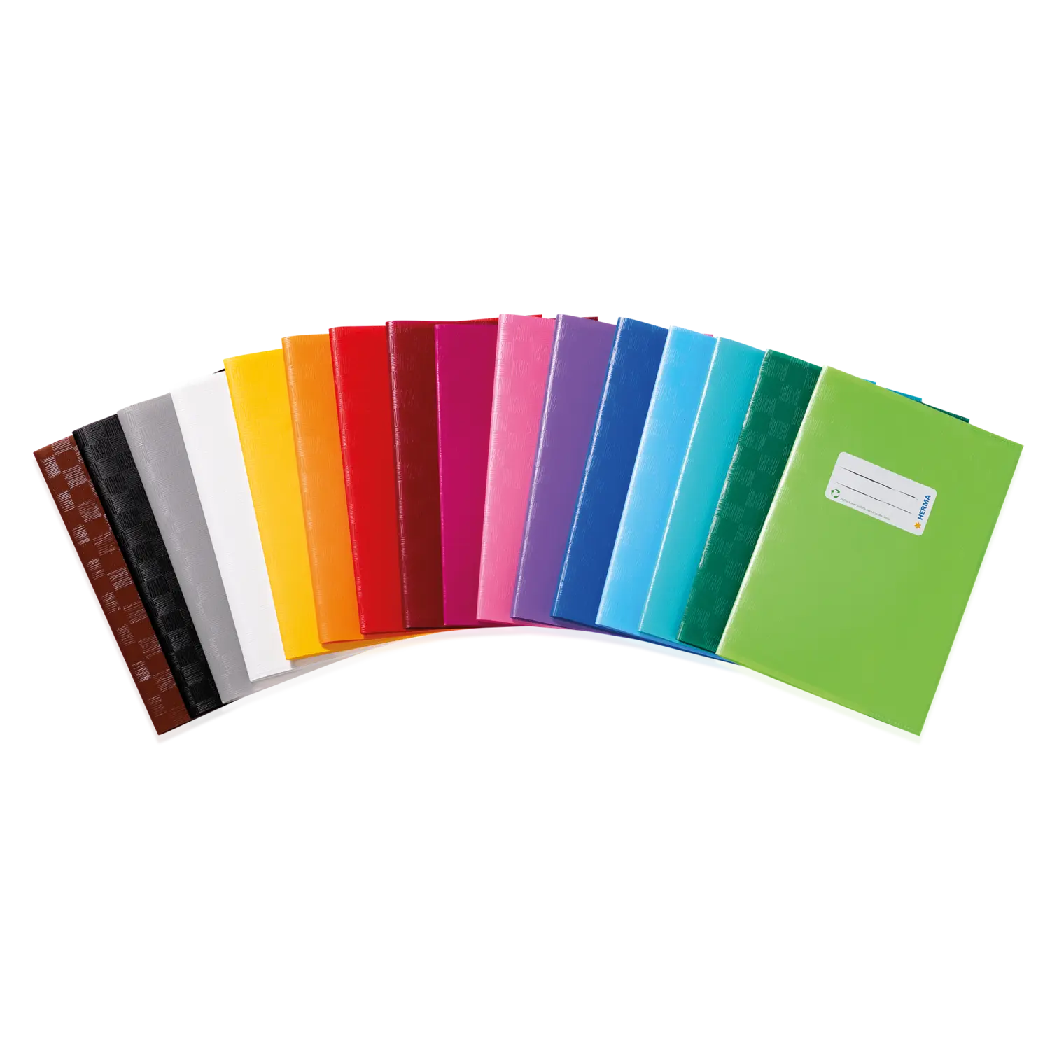 Exercise book covers made of polypropylene film, with fine line texture, solid finished, with inscription label.