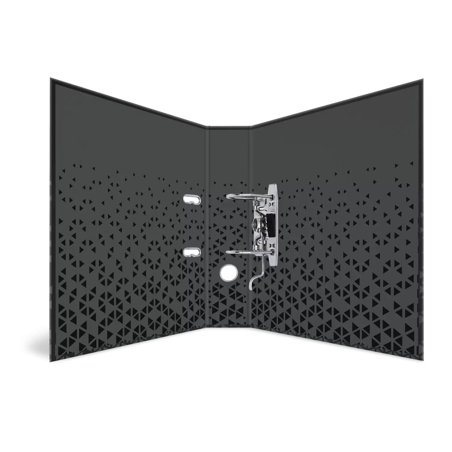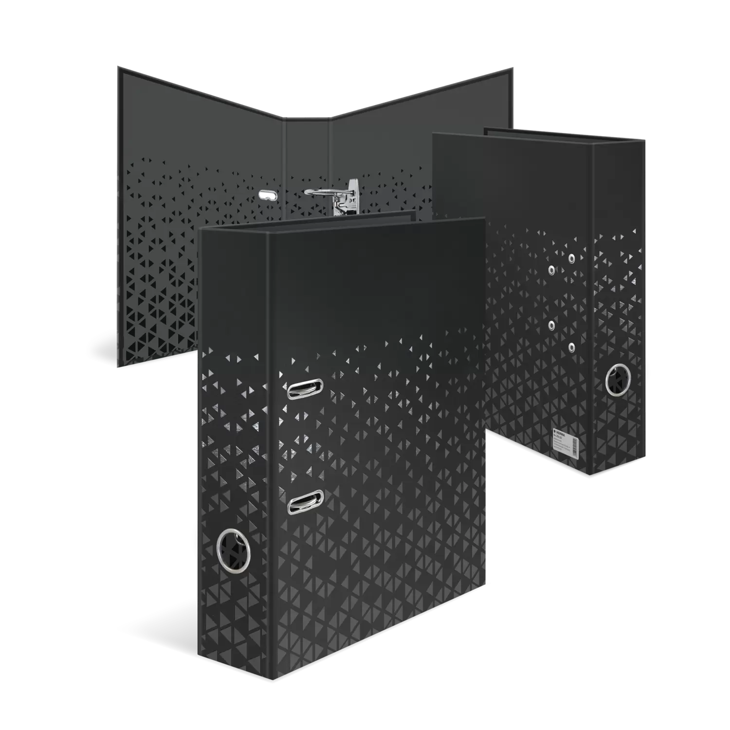 The new file "Color" in black for documents in A4 format is an absolute must-have for anyone who values style and organization. This file is not only functional, but also a real eye-catcher. The special feature is the glossy surface, which offers a unique softtouch haptic. Many small triangular patterns have been finished with high-quality coating, giving the file an elegant and modern look. In addition to the aesthetic aspect, the file also impresses with its practical features. It offers sufficient space for documents in A4 format and ensures that they can be stored safely and in an organized manner. Thanks to the very sturdy material, the file is durable and resistant.