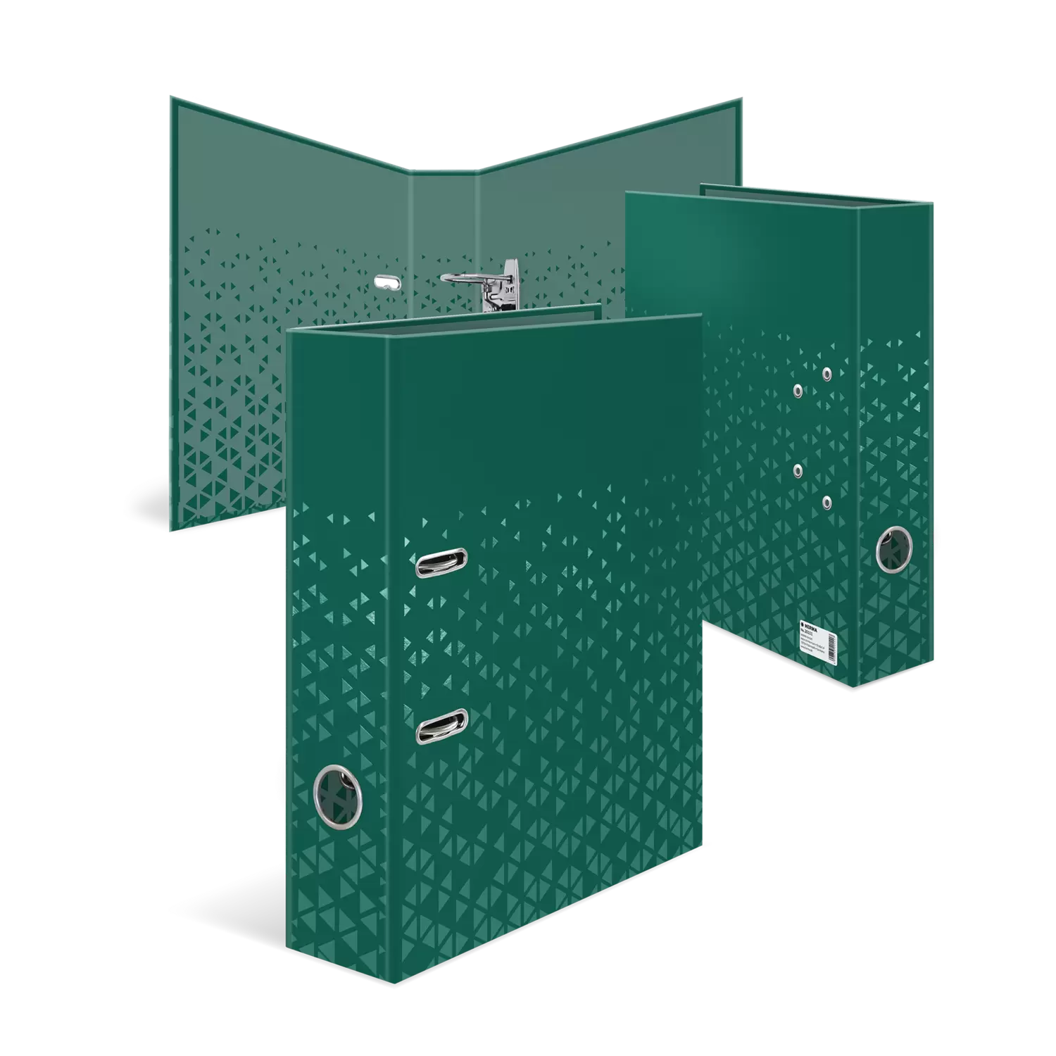 The file "Color" in dark green for documents in A4 format is an absolute must-have for anyone who values style and organization. This file is not only functional, but also a real eye-catcher. The special feature is the glossy surface, which offers a unique softtouch haptic. Many small triangular patterns have been finished with high-quality coating, giving the file an elegant and modern look. In addition to the aesthetic aspect, the file also impresses with its practical features. It offers sufficient space for documents in A4 format and ensures that they can be stored safely and in an organized manner. Thanks to the very sturdy material, the file is durable and resistant.