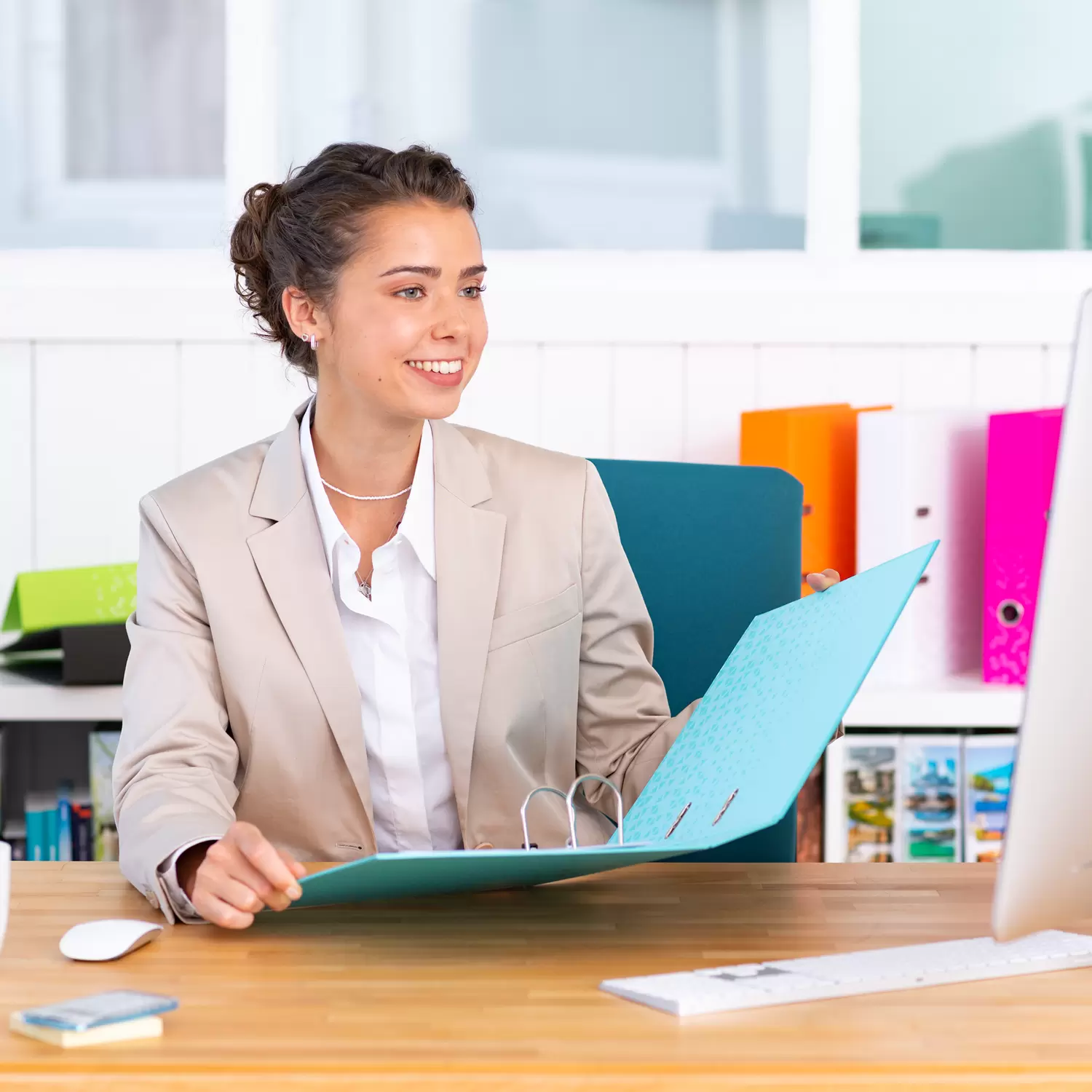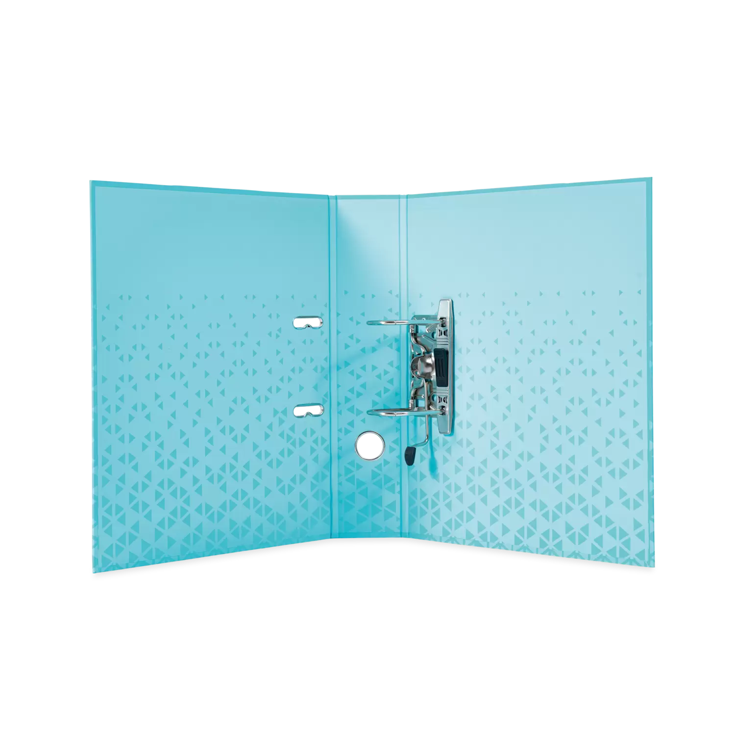 The new file "Color" in turquoise for documents in A4 format is an absolute must-have for anyone who values style and organization. This file is not only functional, but also a real eye-catcher. The special feature is the glossy surface, which offers a unique softtouch haptic. Many small triangular patterns have been finished with high-quality coating, giving the file an elegant and modern look. In addition to the aesthetic aspect, the file also impresses with its practical features. It offers sufficient space for documents in A4 format and ensures that they can be stored safely and in an organized manner. Thanks to the very sturdy material, the file is durable and resistant.