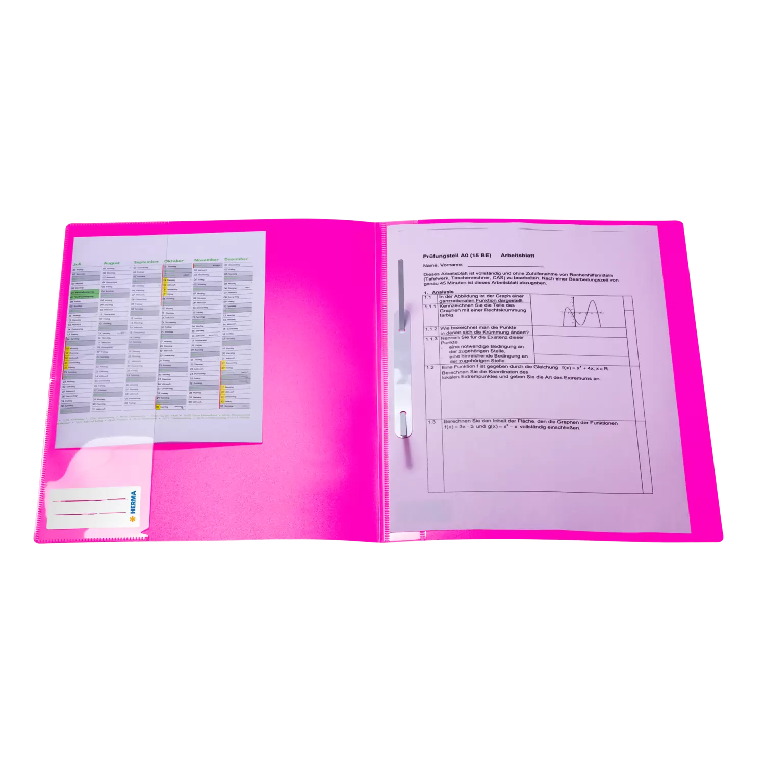 At school, in the office or at home, the HERMA flat file in neon pink is a useful helper everywhere. With this semi-transparent flat file, loose sheets in A4 format with standard holes can be quickly and easily filed or stowed away. The transparent front of the flat file makes it easy to see what materials are inside. Bright colour, robust material and convenient to use - that's the HERMA flat files.