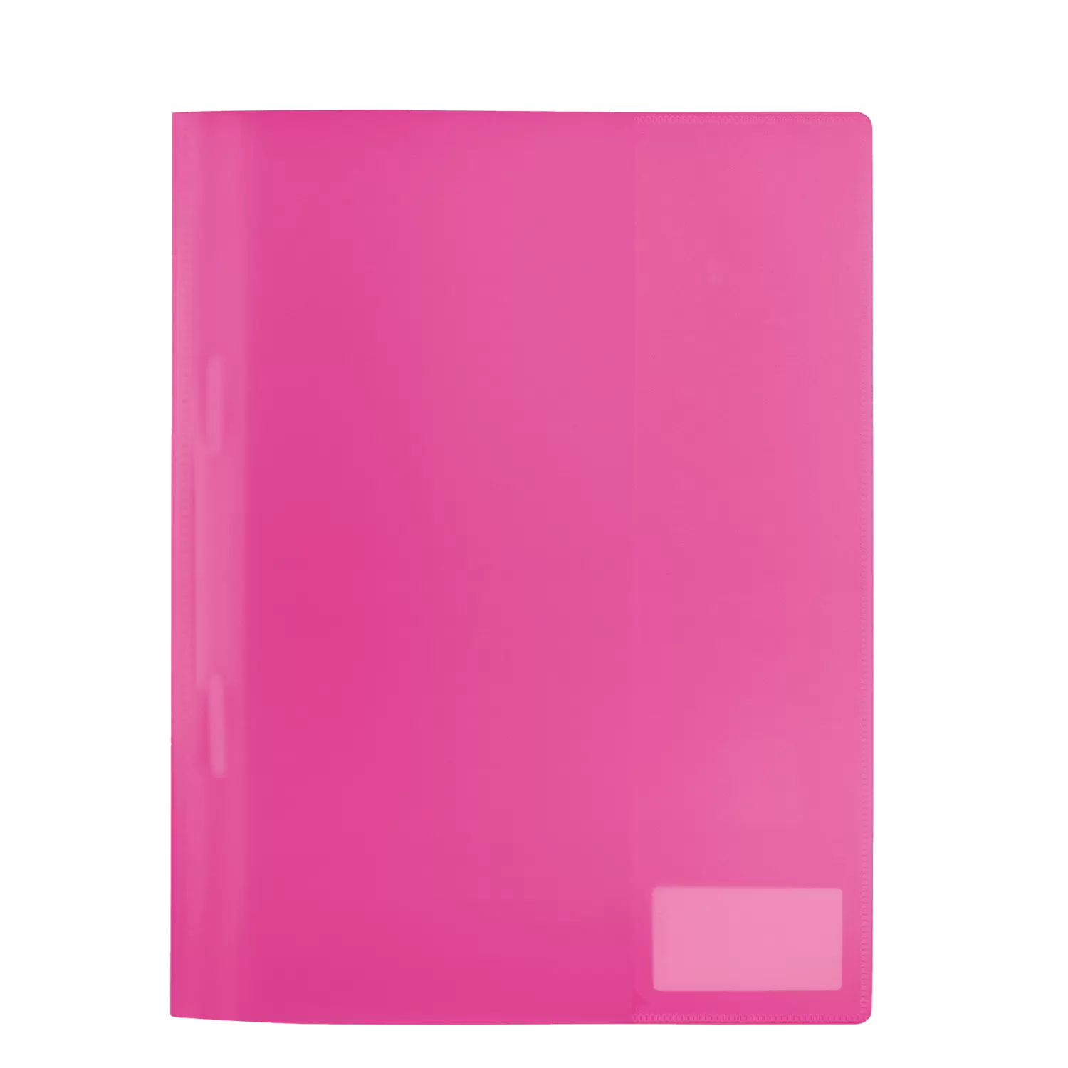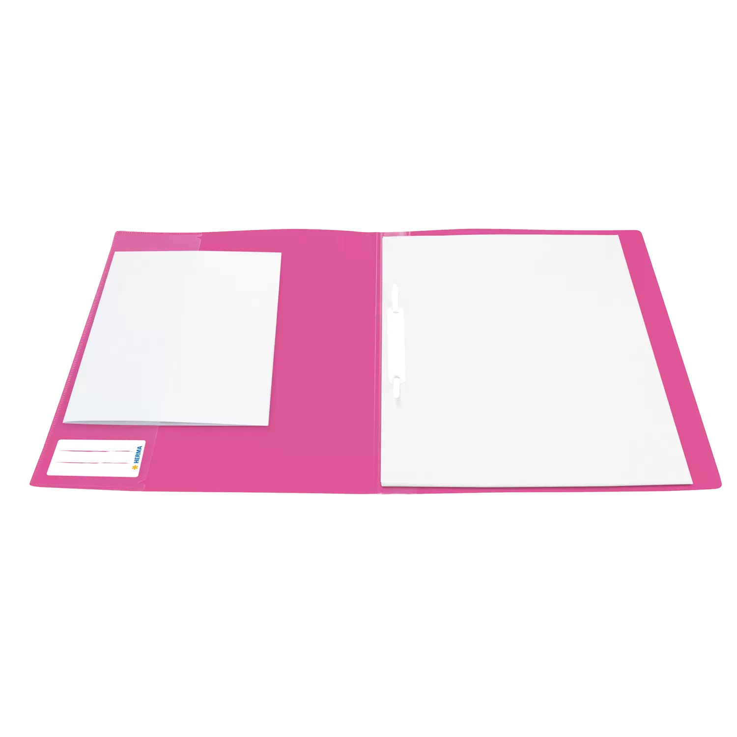 Is keeping things in order not your strong point? This translucent pink flat file with an interior pocket and front label makes organising very simple. The metal fastening clip holds your important papers firmly in place. Personal documents, worksheets and notes all stay together. The strong polypropylene cover provides excellent protection even in bad weather. Because the cover is transparent, you can see right through to the contents, and the inscription label on the outside lets you add information or show the name of the owner. You’ll also find it very useful when you don’t have a hole punch at hand. The large interior pocket holds papers without bending them. Thanks to the slim design and light material, you can take this flat file anywhere – to school, to the university or to work. The perfect way to keep A4-size documents in order.