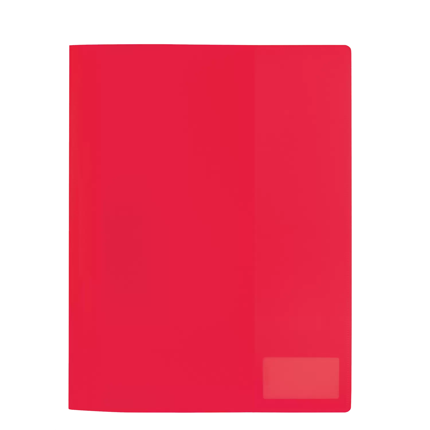 - Flat files for A4 sheets, made of strong, translucent, environmentally friendly polypropylene film with metal fastening clip, in 14 colours, with inscription label and interior pocket