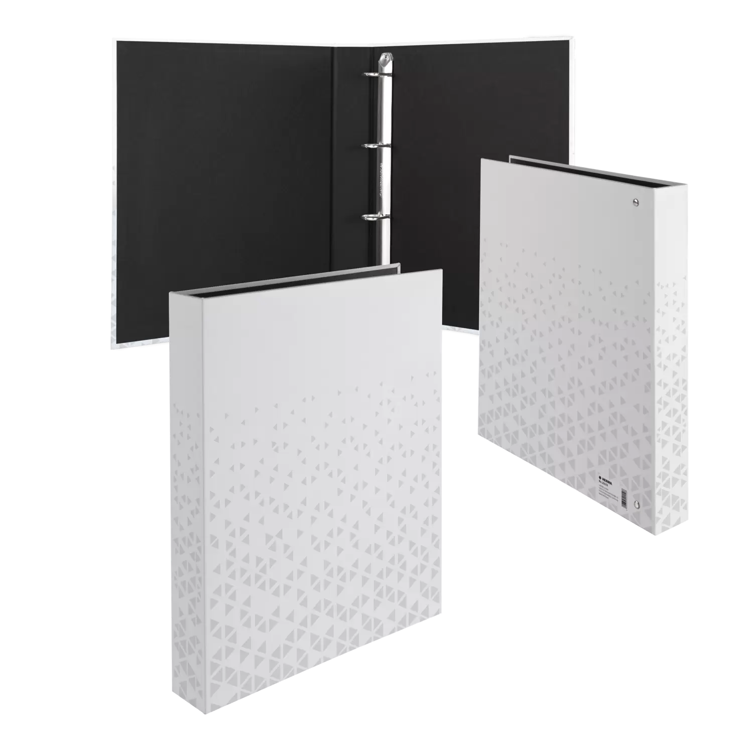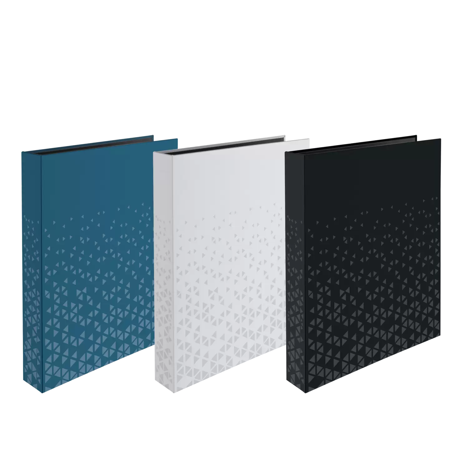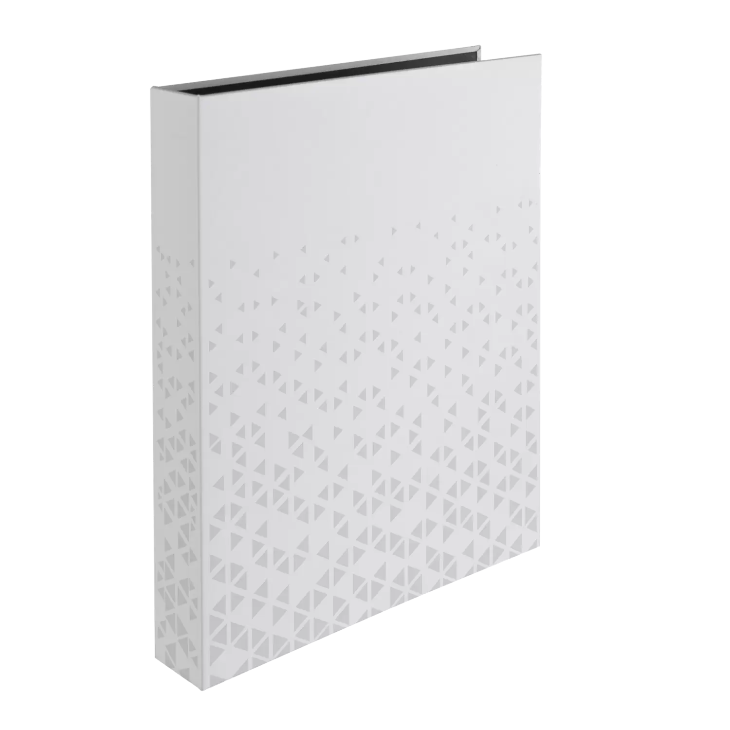 Design meets function: The fotobook that makes organisation stylish! The perfect choice for anyone who values style and functionality. The foil-finished triangular pattern in the colour white and the velvety softtouch surface add a modern, high-quality look. The sturdy cardboard reliably protects the contents, while the 4-ring mechanism is ideal for photo and punched pockets. With a practical spine width of 46 mm, it offers plenty of space for photos and documents and looks elegant and space-saving at the same time. They offer sufficient space for documents in A4 format.