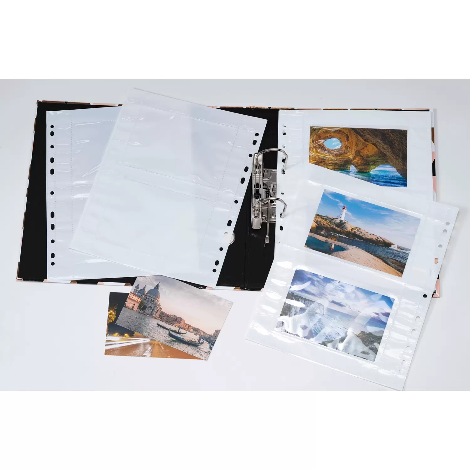 HERMA Fotophan photo pockets are practical organizer and storage aids for photos, pictures, postcards, tickets and much more. Simply insert them into the transparent pockets and everything is safely stowed away - uncomplicated and completely without any sticking! The photo pockets are made of sturdy white polypropylene, with clear-transparent pockets welded on both sides for photos up to 10 x 15 cm in landscape format. This way, 4 photos per pocket can be stored safely and securely. The pockets are absolutely plasticizer-free and archival safe, with no chemical effects on the photos. Each package contains 250 pockets with space for 1,000 photos. Thanks to the practical Euro perforation, they can be filed into all standard files, albums and ring binders for A4 formats. Ideal are the HERMA Fotobooks, which are available in 5 great colours. Perfect protection, completely without dirt, creases or fingerprints.