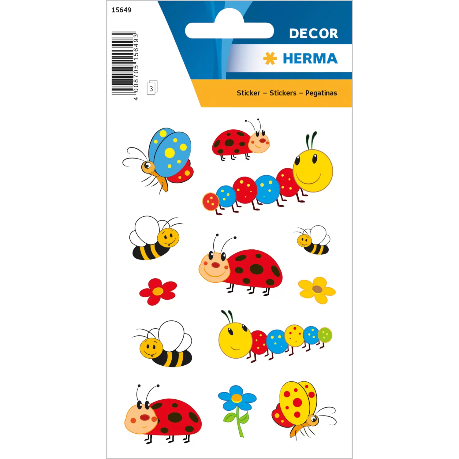 HERMA stickers with caterpillar Frieda and her friends are an attractive decorative addition to friendship books, letters, photo albums and greeting cards and are especially trendy for your little ones. In kindergarten in the handicraft lesson, at home in the children’s room or with friends, these stickers are a guarantee for fun with handicrafts – and they also encourage the owners to collect and exchange. They can be stuck on individual objects or sorted and stored in HERMA sticker books. They make a great decoration for letters, birthday cards and any other smooth surfaces. Your children will develop an eye for creating different design possibilities and start to become creative at an early age. The cheerful Frieda and friends stickers are especially eye-catching in kindergarten thanks to their colours and the great impression they make. The children’s stickers are permanently adhesive, so they can be enjoyed for a long time. They are very easy to separate from their backing paper and they can be individually glued on. 39 colourful and super-cute stickers grace 3 sheets – and their unique design will ensure that they quickly find a location where they will act as eye-catchers for a long time to come.
