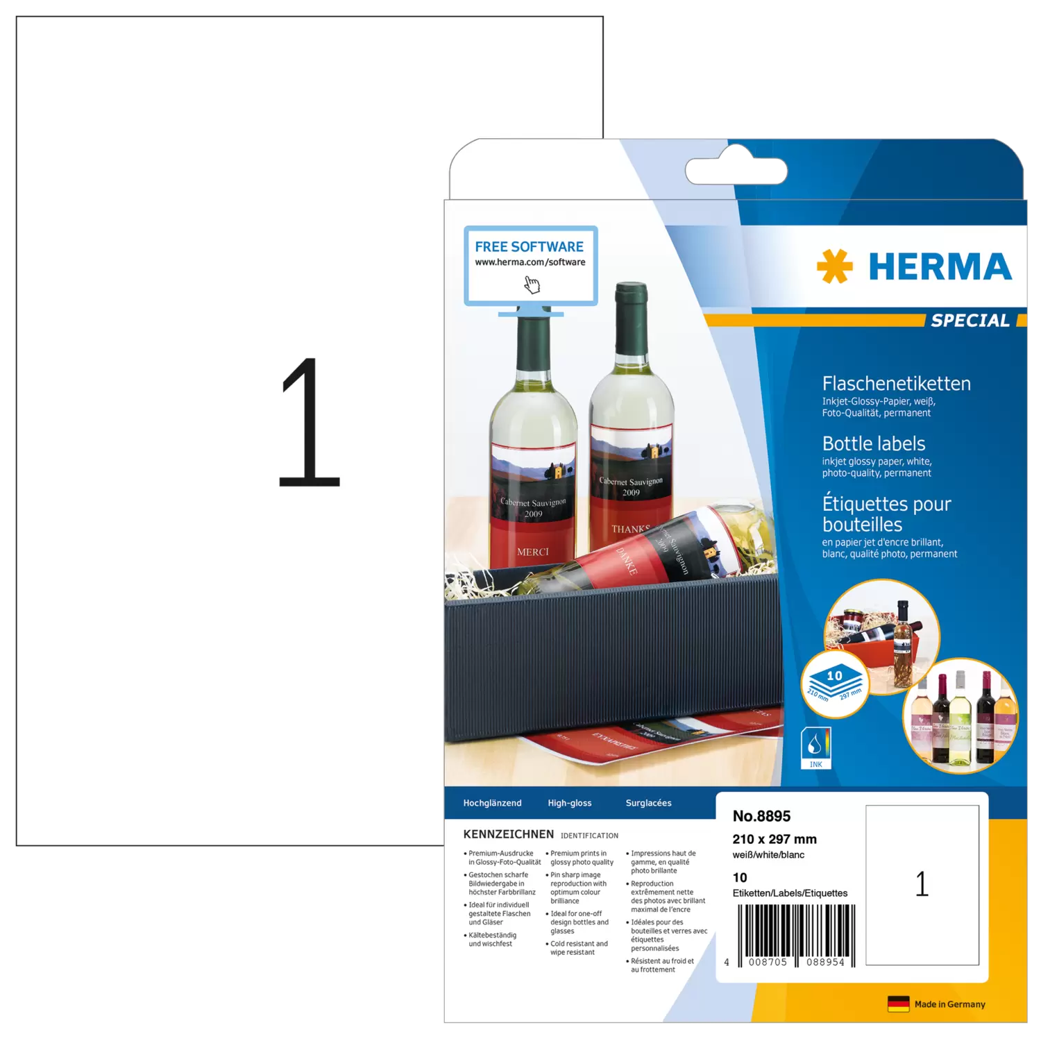 High-gloss inkjet labels A4, 210 x 297 mm, white, high gloss, permanent adhesion