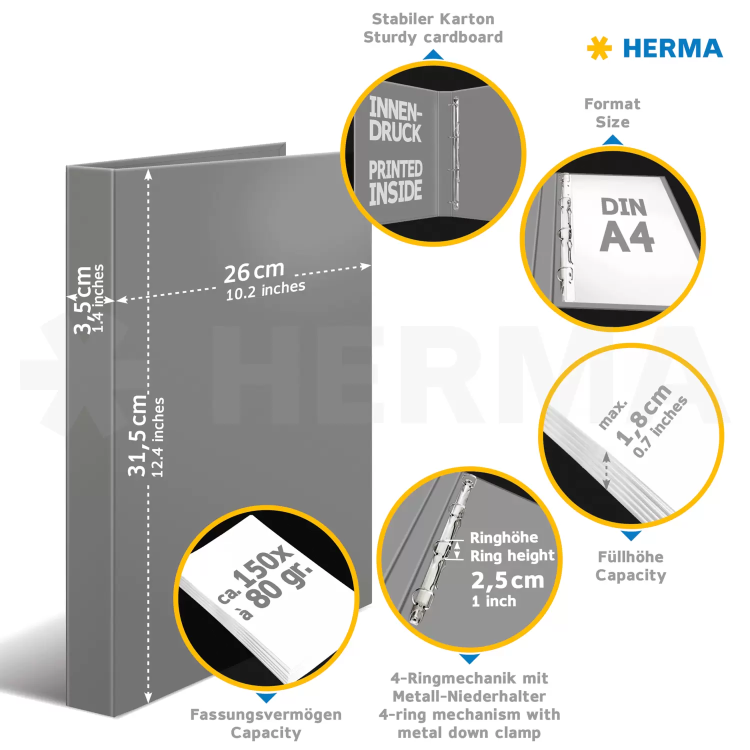 • Made of sturdy cardboard, spine width 35 mm