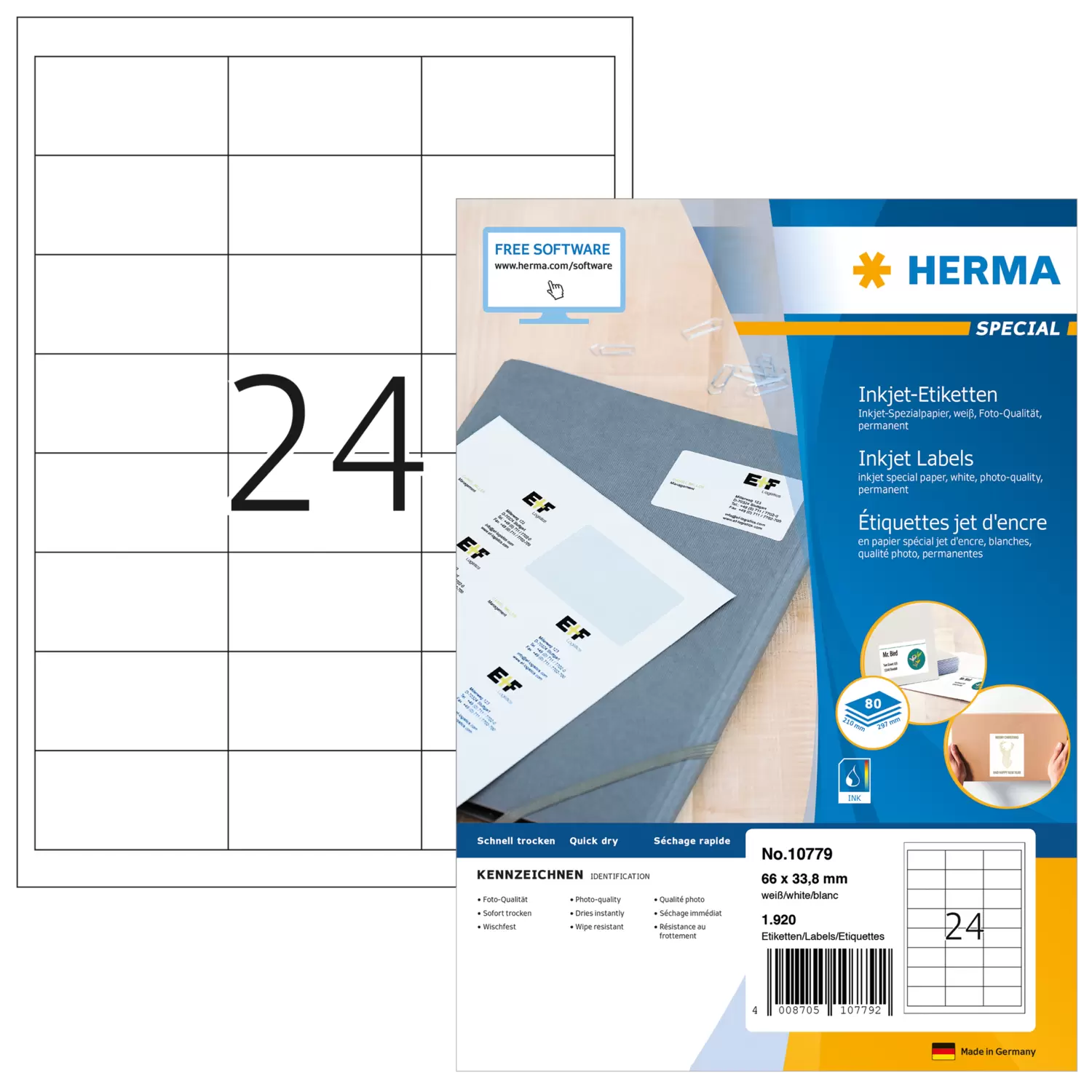 Inkjet labels A4, 66 x 33,8 mm, white, permanent adhesion