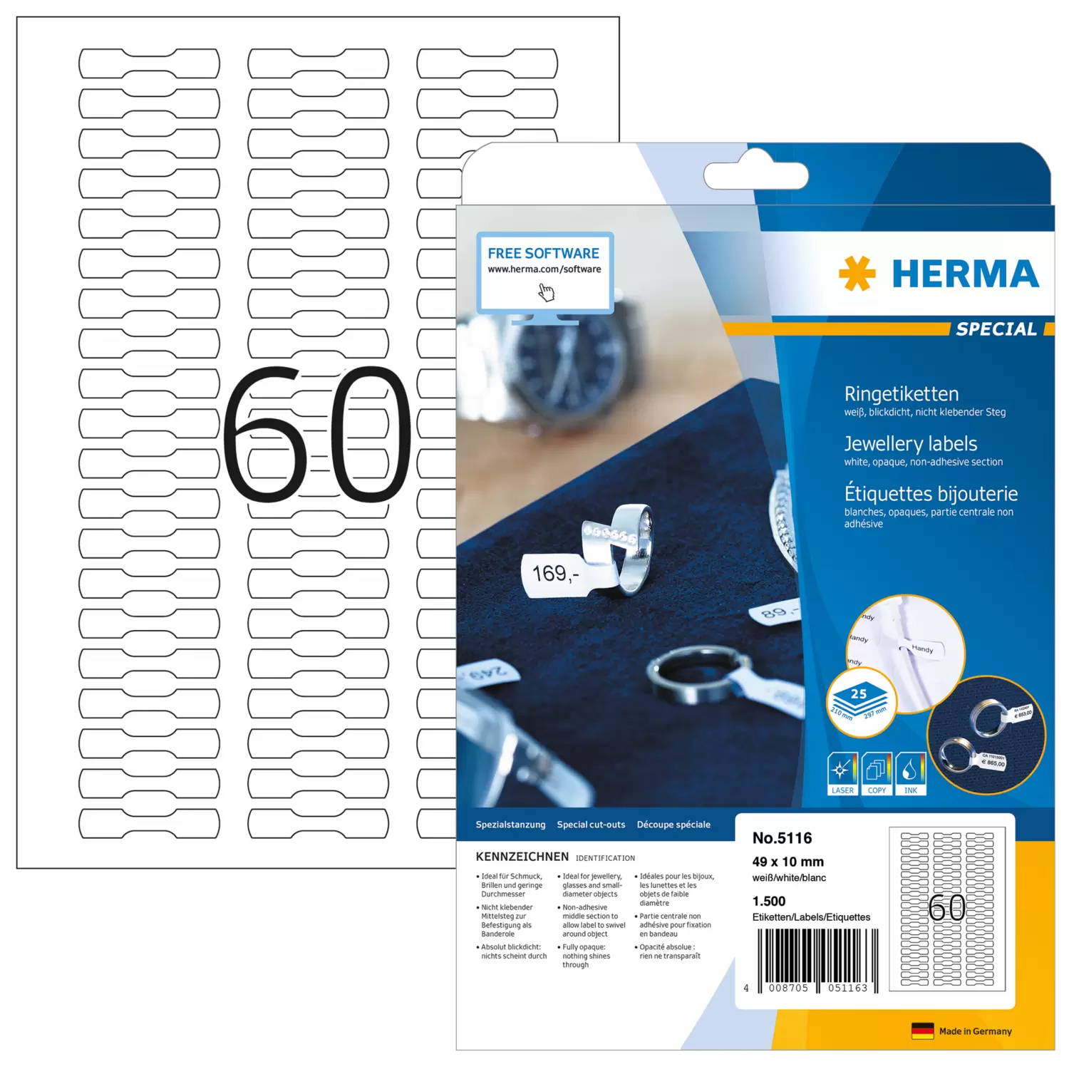 Jewellery labels A4, 49 x 10 mm, white, opaque, with strong adhesion