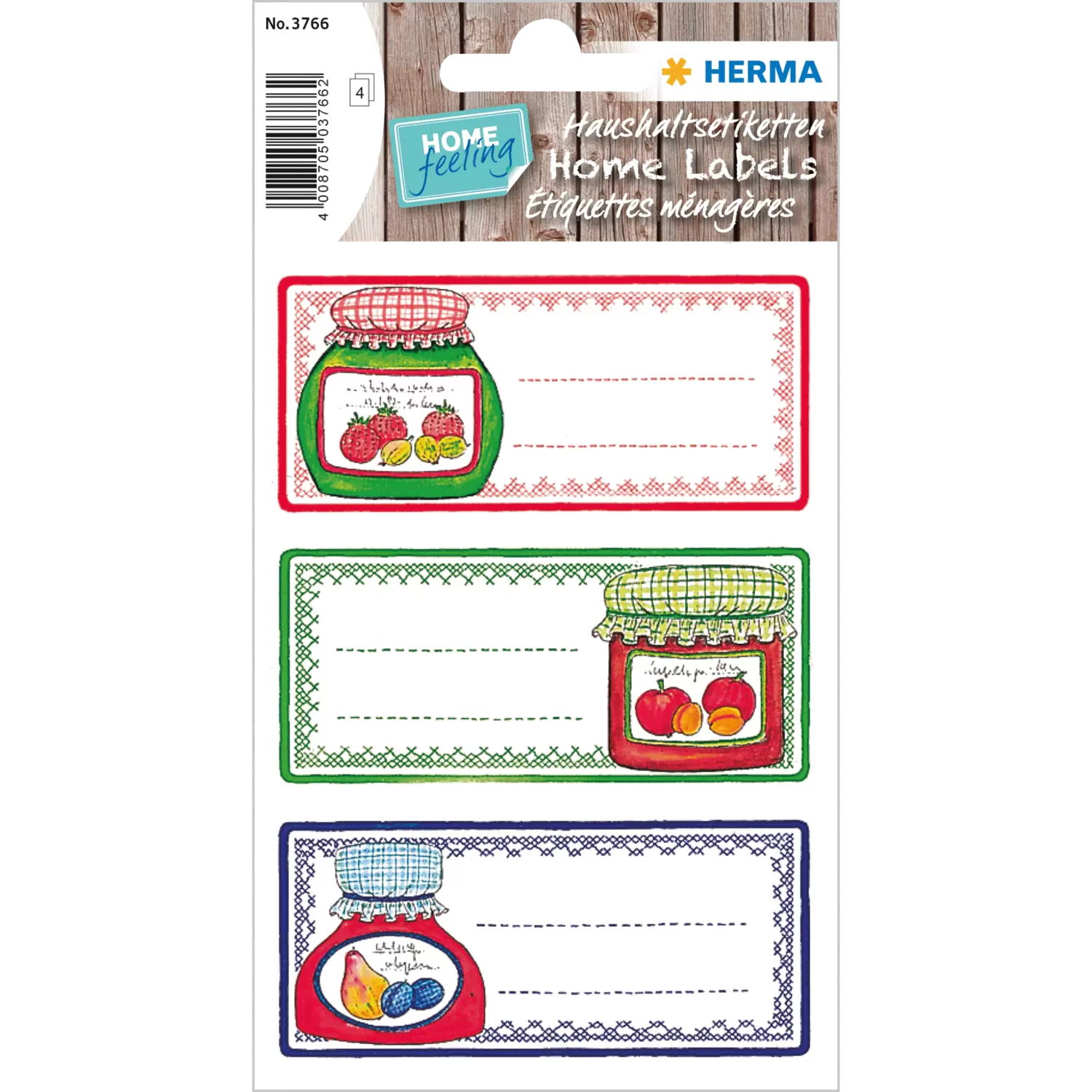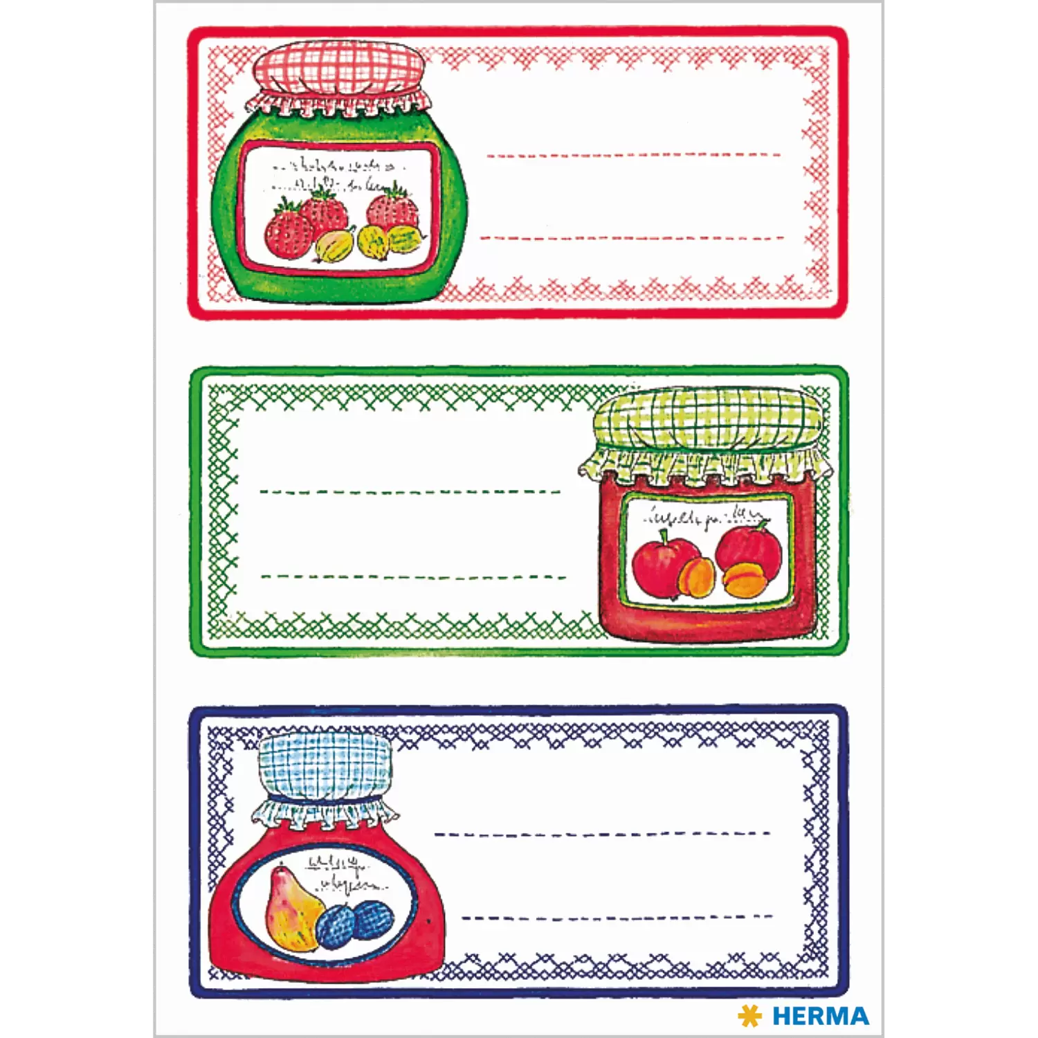 Self-adhesive kitchen labels, made of paper, colourful printed. For labelling of food and beverage or for labelling of spices.
