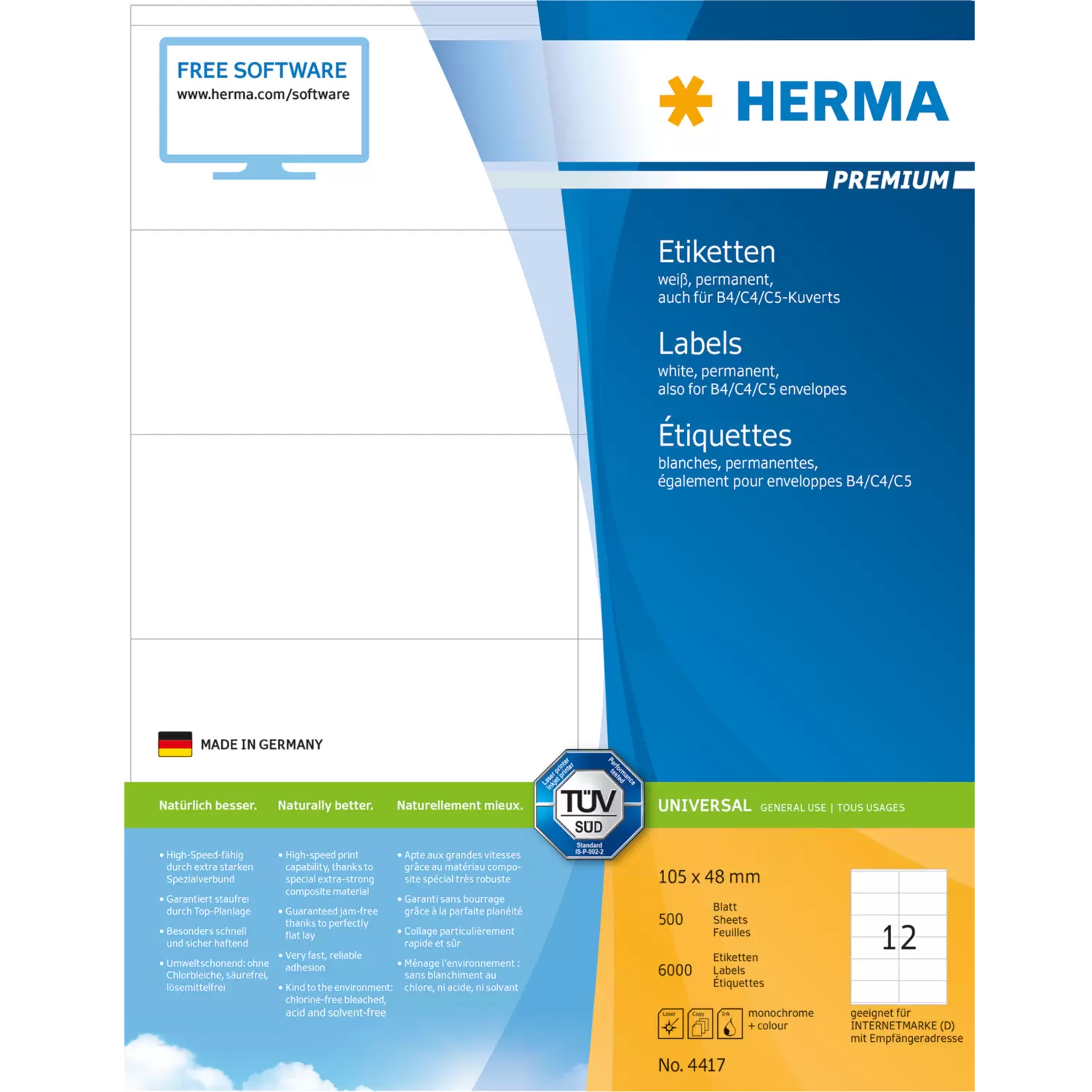 PREMIUM labels A4, 105 x 48 mm, white, permanent adhesion