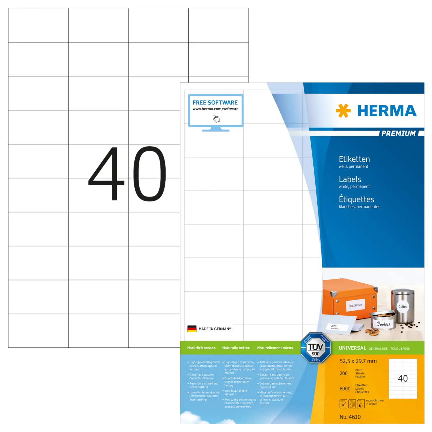 PREMIUM labels A4, 52,5 x 29,7 mm, white, permanent adhesion