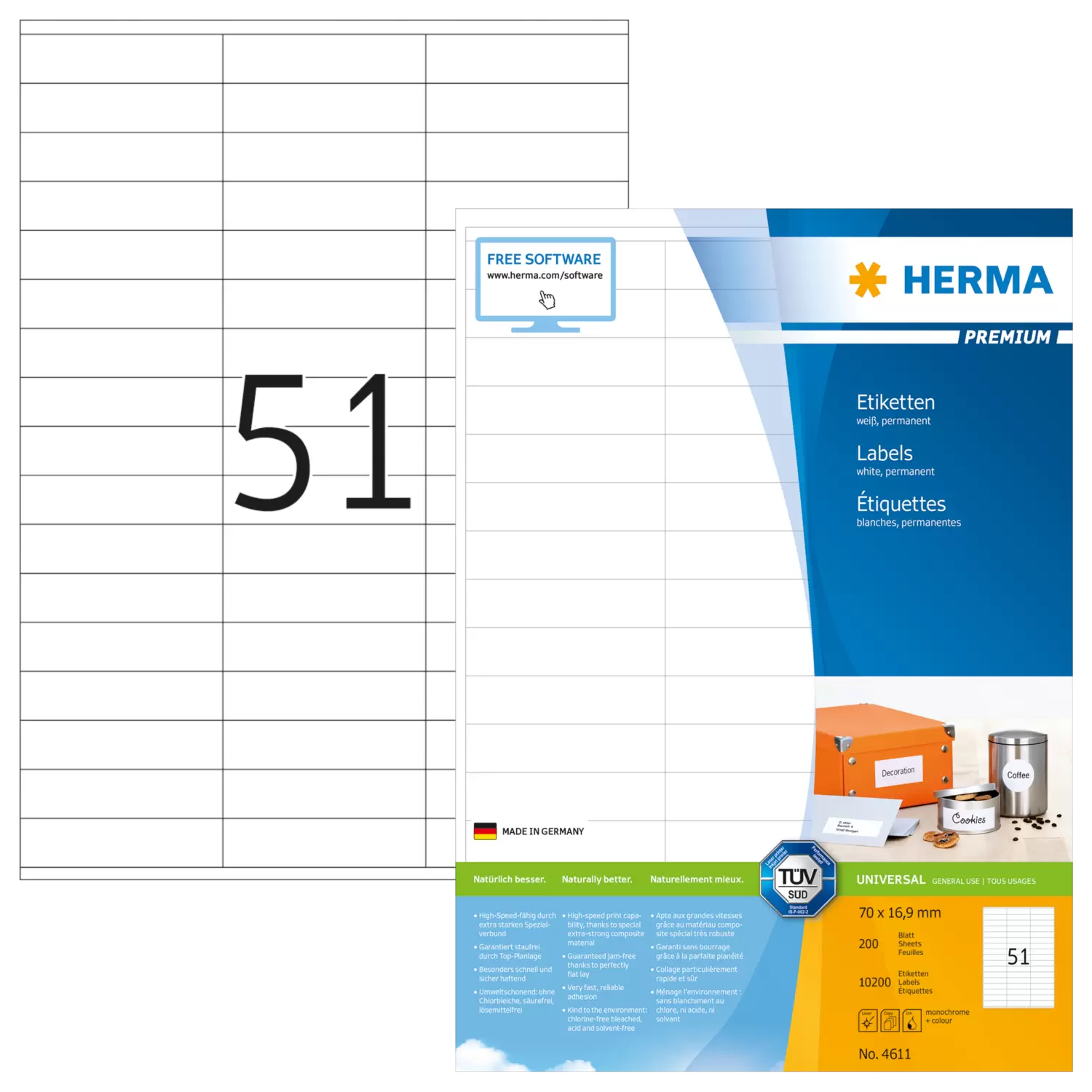 PREMIUM labels A4, 70 x 16,9 mm, white, permanent adhesion