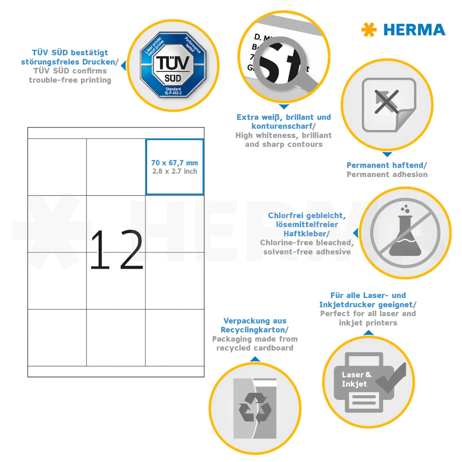 PREMIUM labels A4, 70 x 67,7 mm, white, permanent adhesion