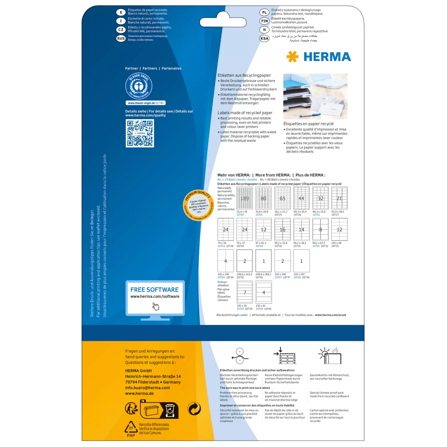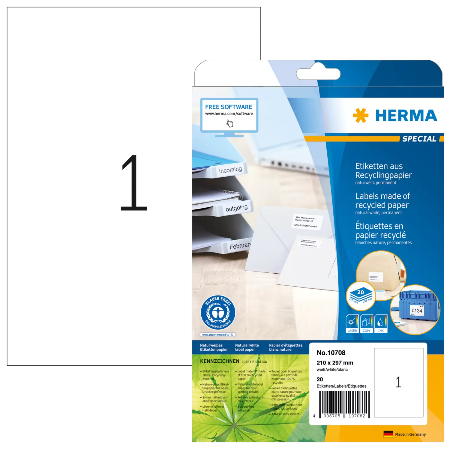 Labels made of recycled paper A4, 210 x 297 mm, white, permanent adhesion
