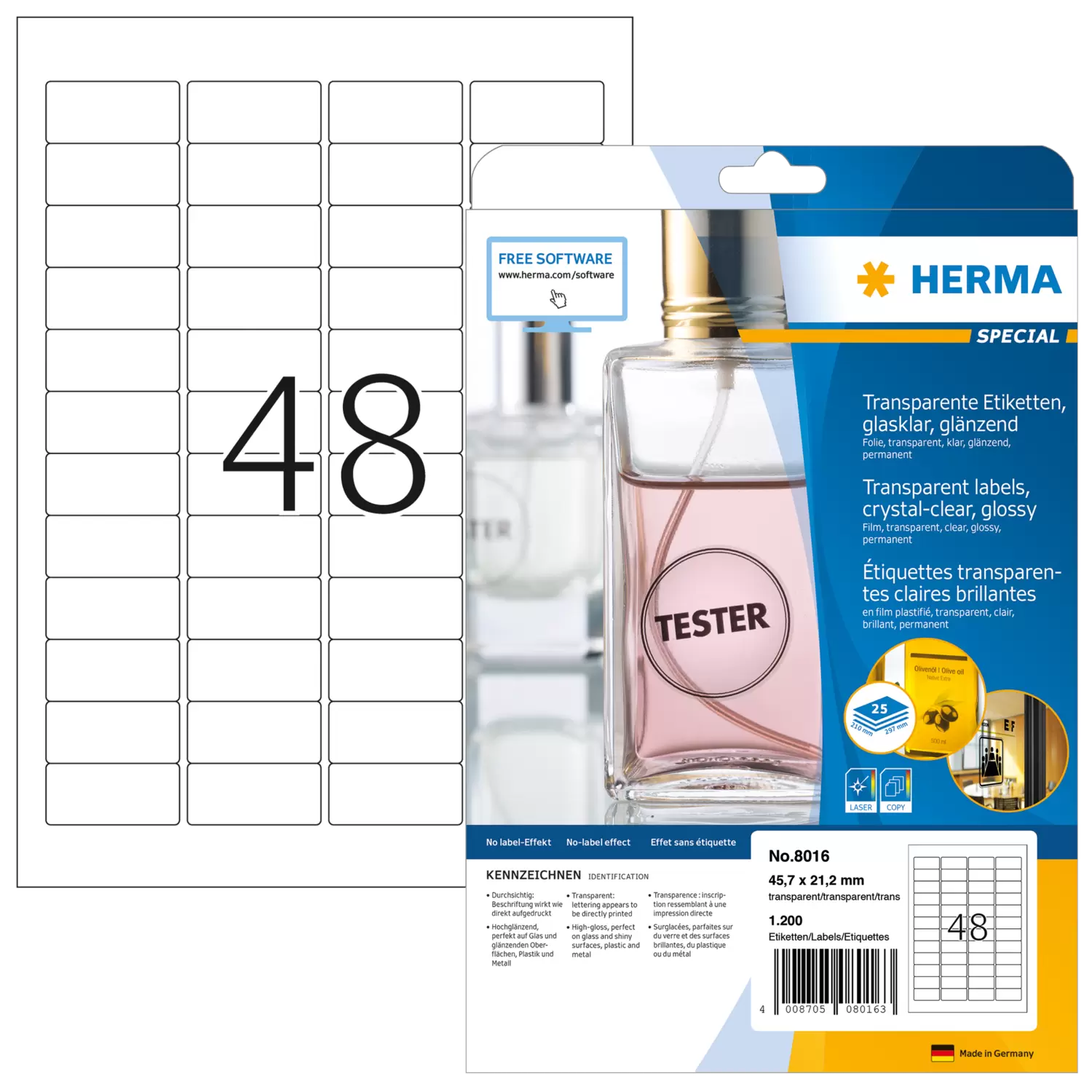 Transparent film labels, crystal-clear A4, 45,7 x 21,2 mm, weatherproof, permanent adhesion