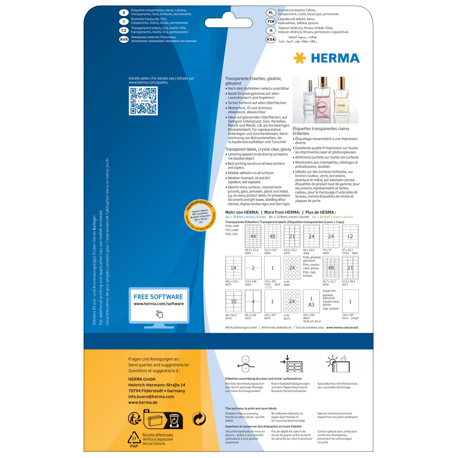 Transparent film labels, crystal-clear A4, 96 x 50,8 mm, weatherproof, permanent adhesion