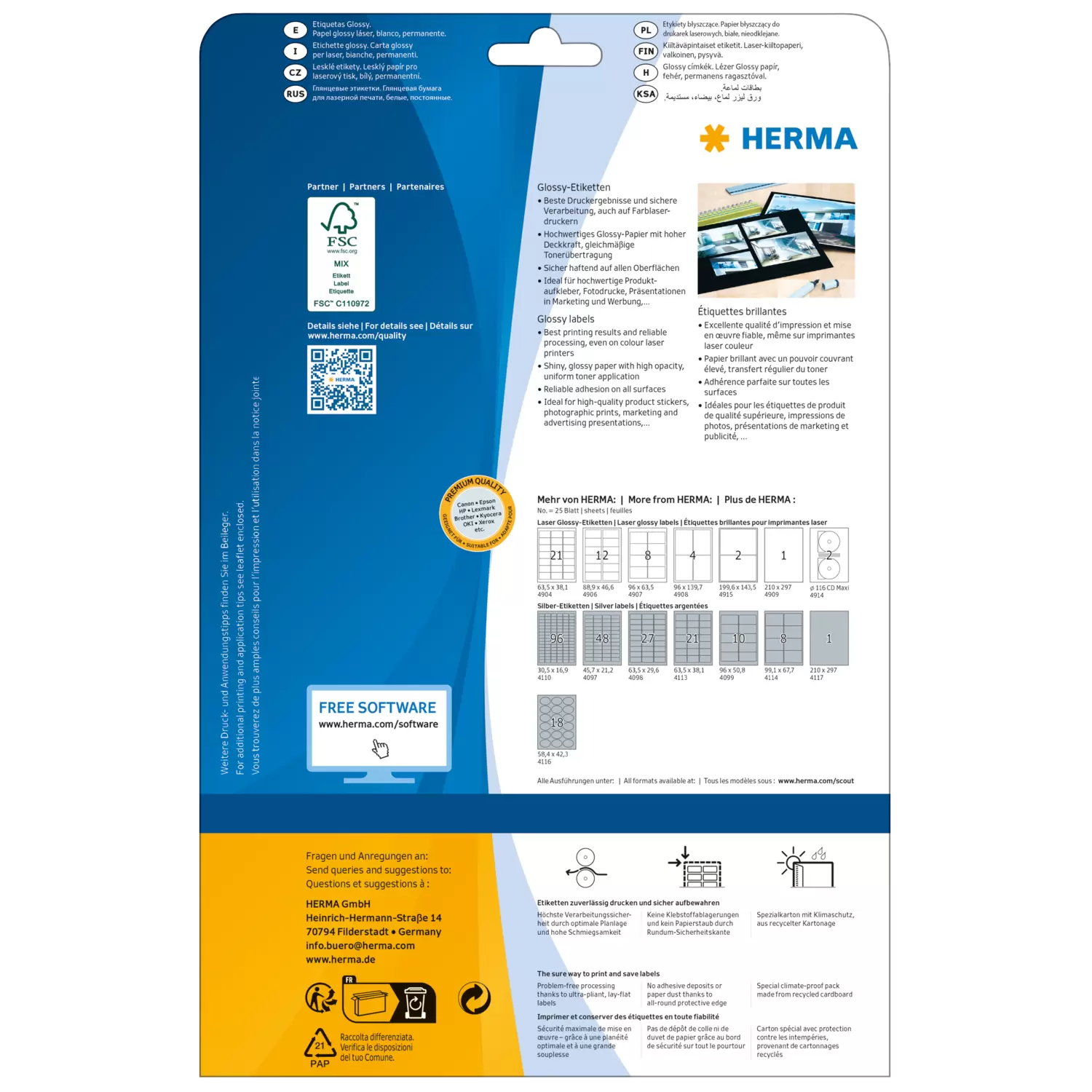 High-gloss labels A4, 199,6 x 143,5 mm, white, permanent adhesion
