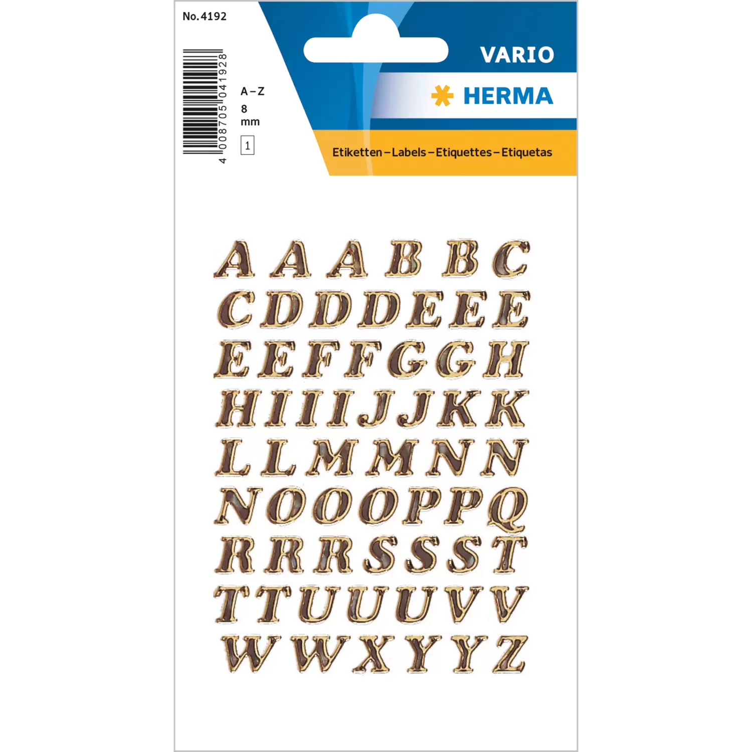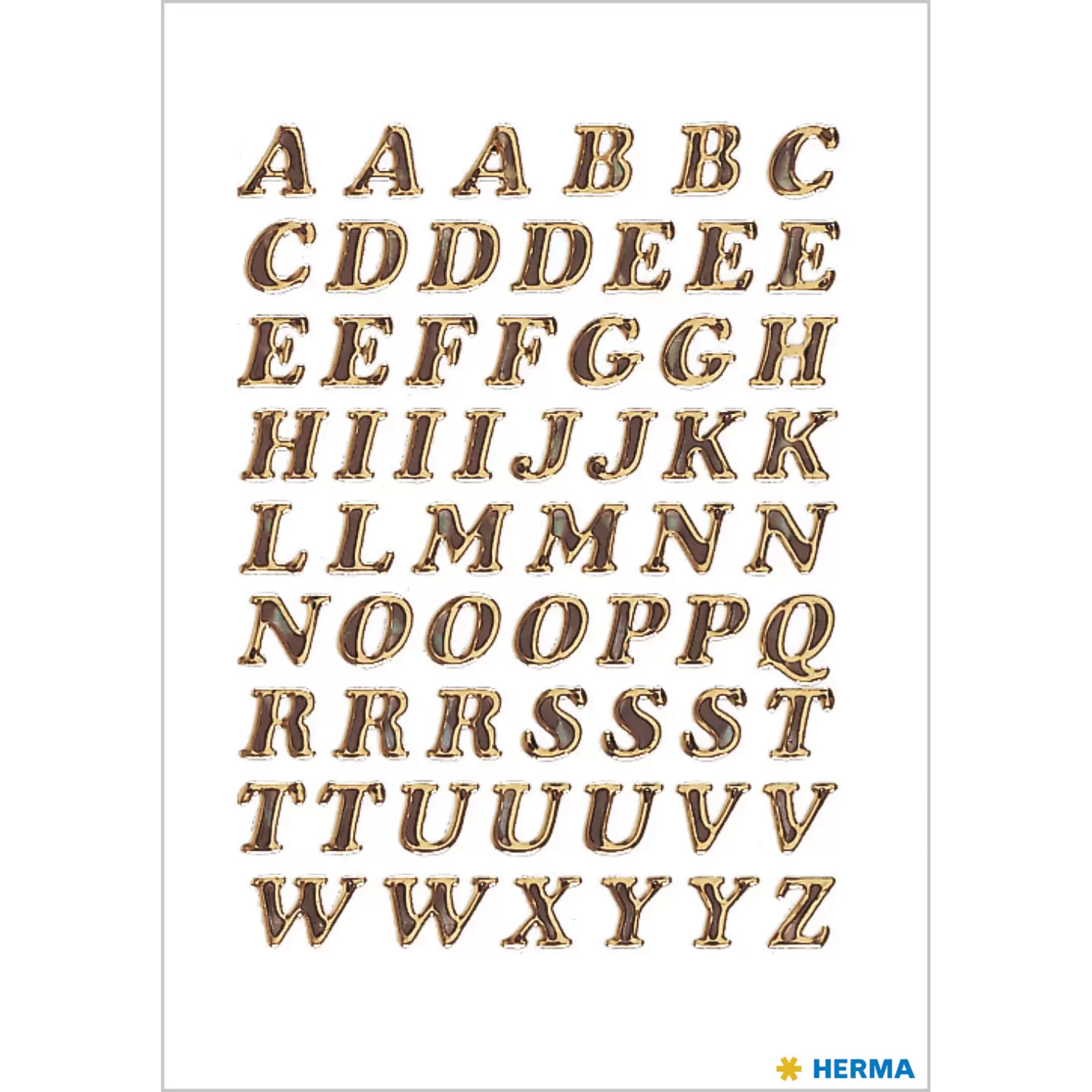 Letters 8 mm A-Z prismatic film gold glittery