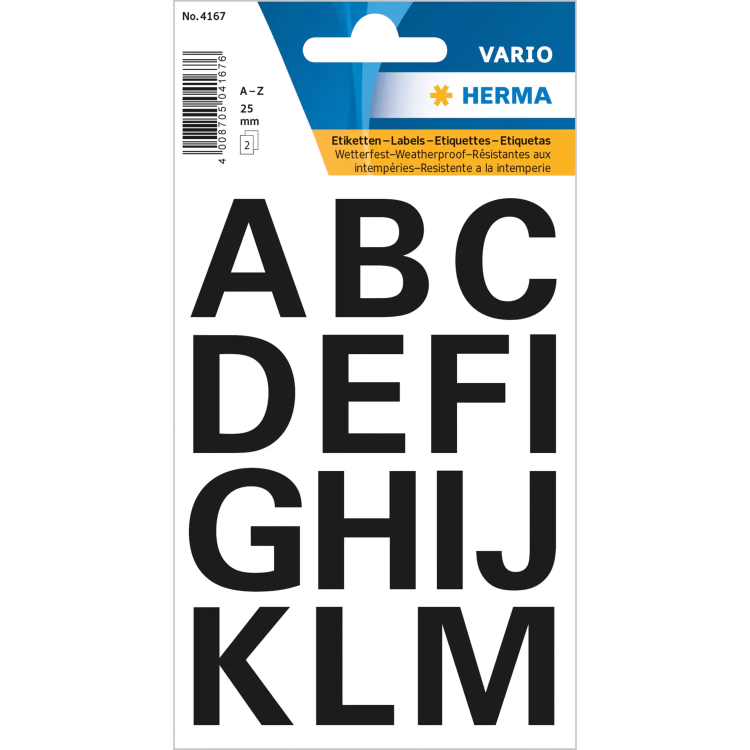 Letters 25 mm A-Z weatherproof film black