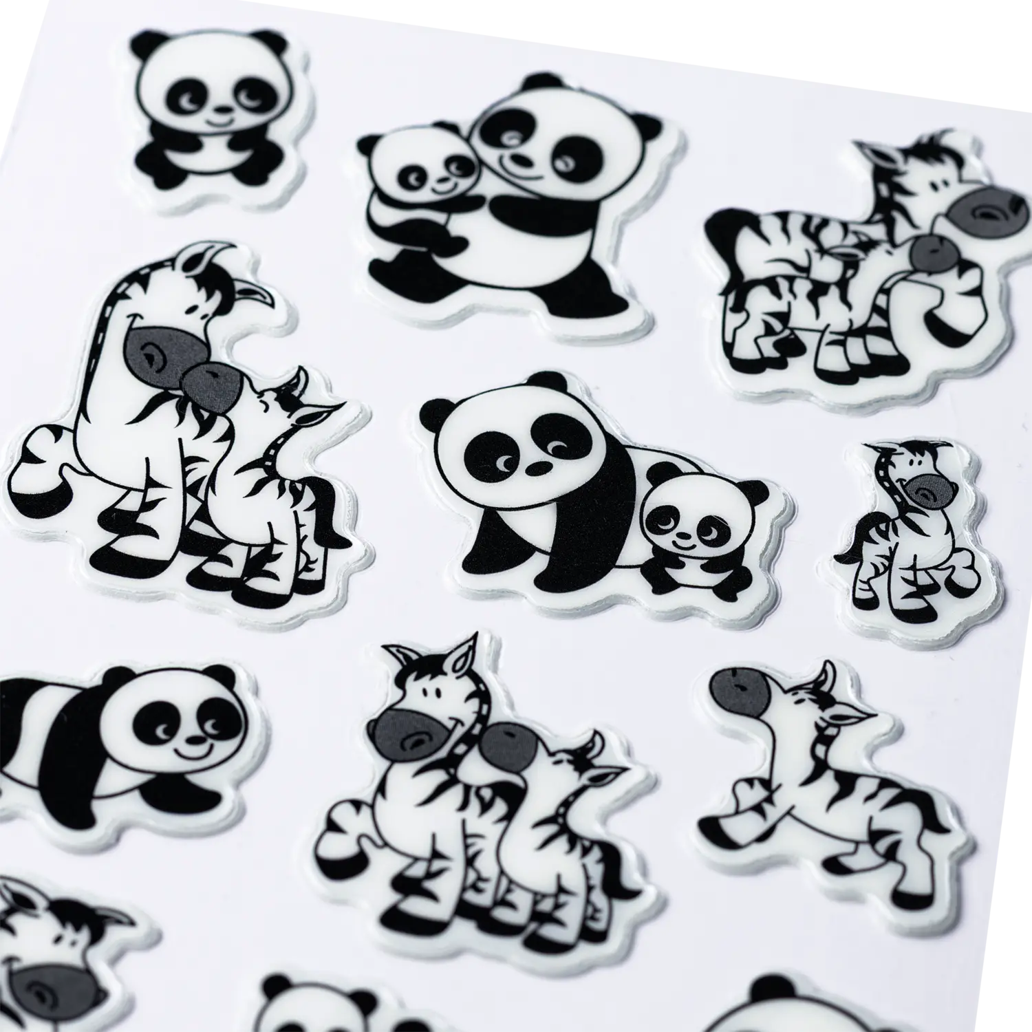 Stickers panda and zebra families, transpuffy