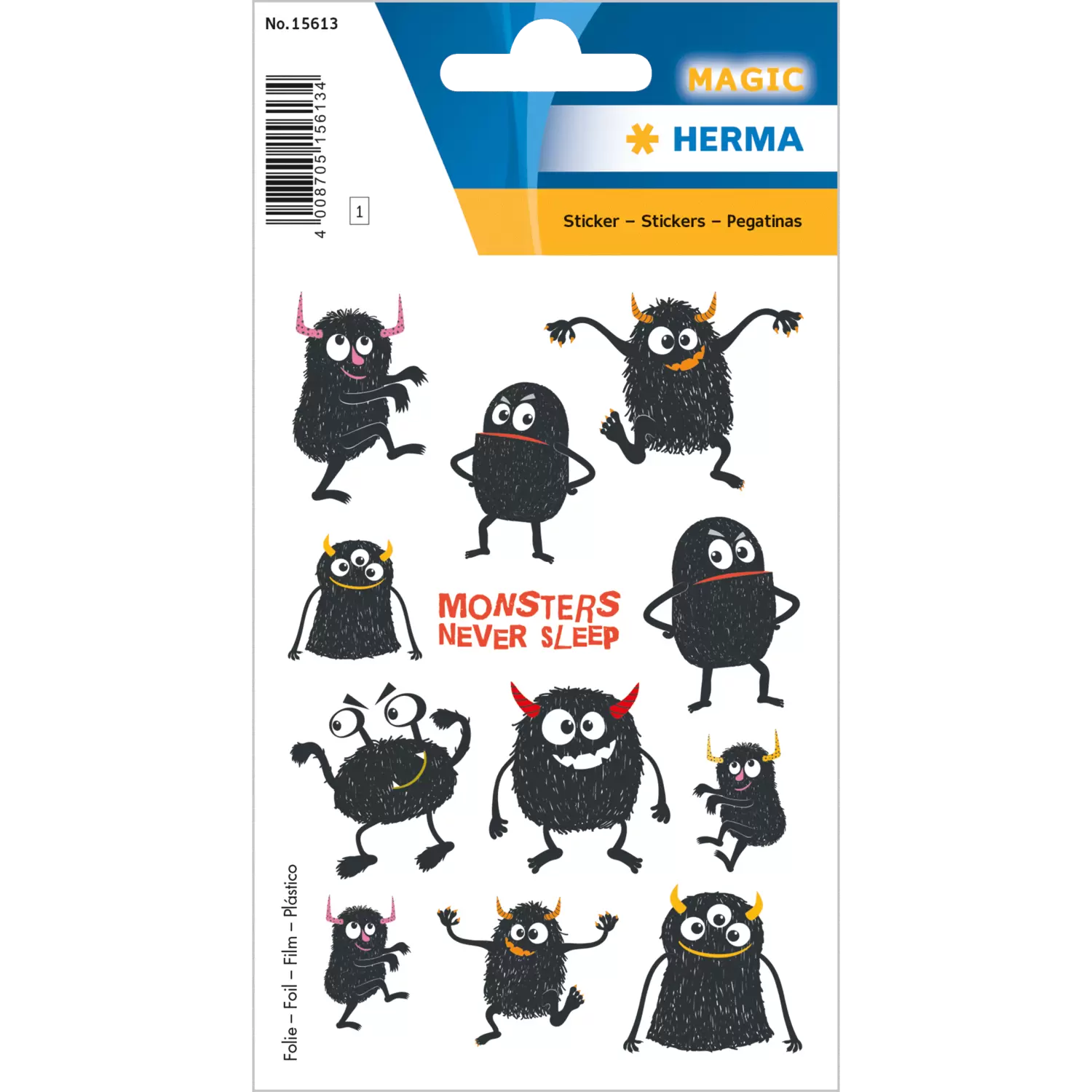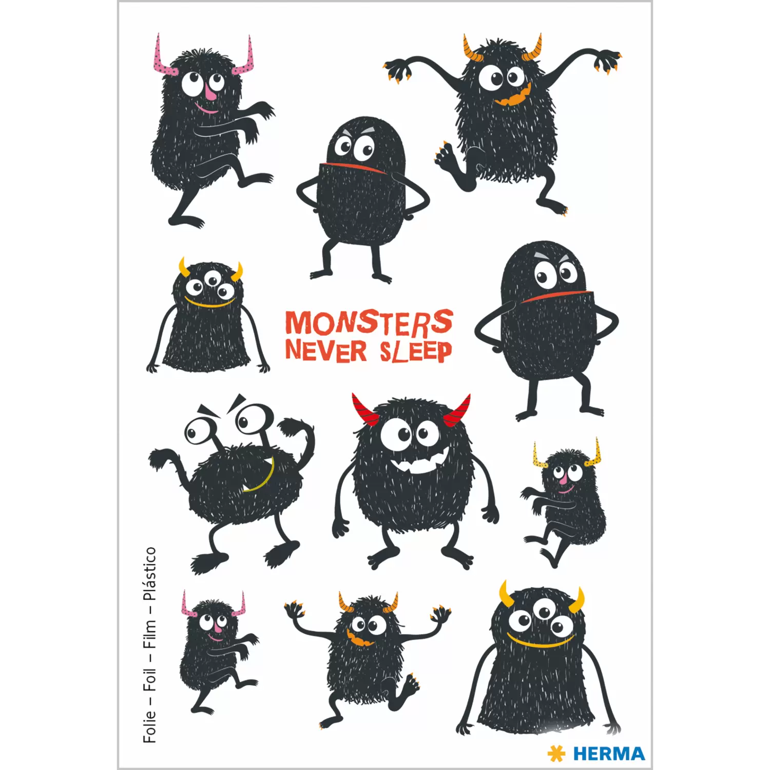 Stickers of small monsters with cheeky faces, 12 stickers on one sheet, motifs encourage collecting and swapping, provide ideal play for kindergarten and primary school children, Self-adhesive stickers from HERMA adhere firmly, they look especially good on school folders, schoolbags and friendship books, ideal for handicraft activities