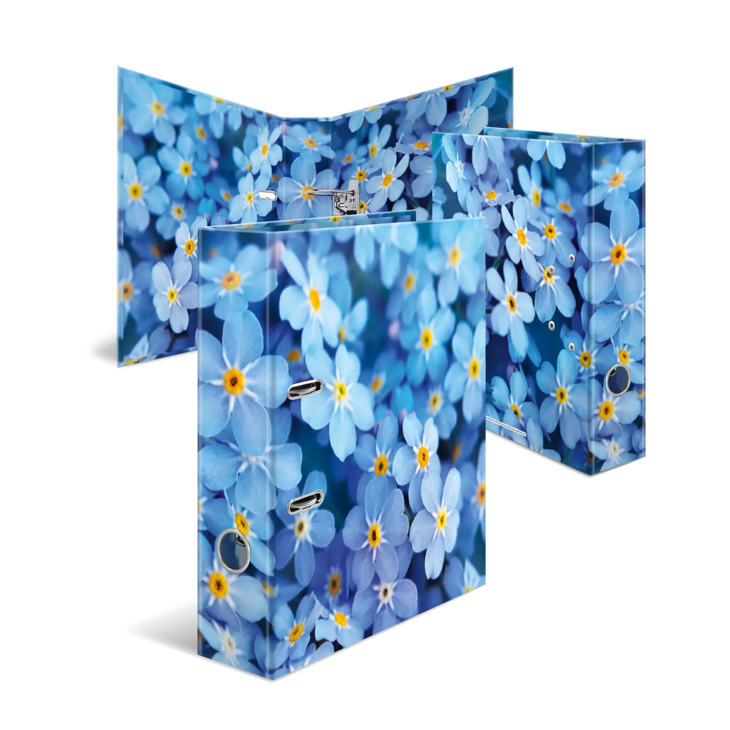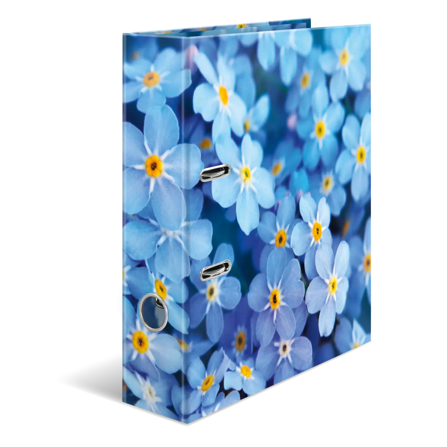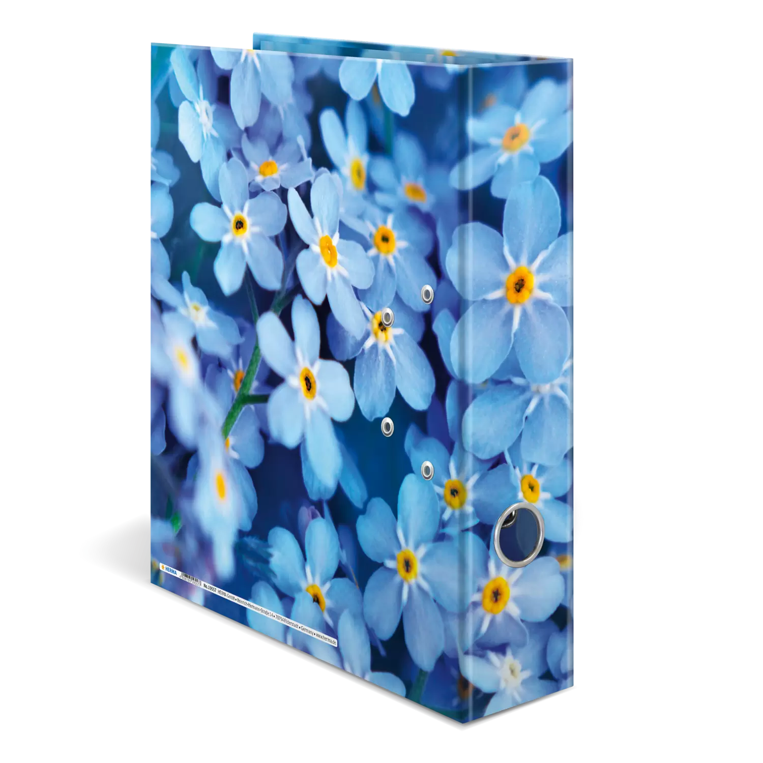 With the HERMA motif file Blue Flowers of the series Flowers, you can bring the beauty of the colourful world of flowers into your home, office or school. Flowers are not the queens of flora for nothing: they have always fascinated. They are surrounded by that air of grace and loveliness that only floral beauties have. Each species has its colours, its fragrance, its aura, delicate or strong, discreet or splendid, always special and unique: a gift of colourful diversity, a delight for the senses. A sea of flowers of forget-me-nots in soft blue, a delight for eyes and soul.The special lever arch mechanism with metal compressor bar keeps the contents of the file organised and stable. The wide spine guarantees stability on the shelf and sufficient space for many documents in formats up to A4.