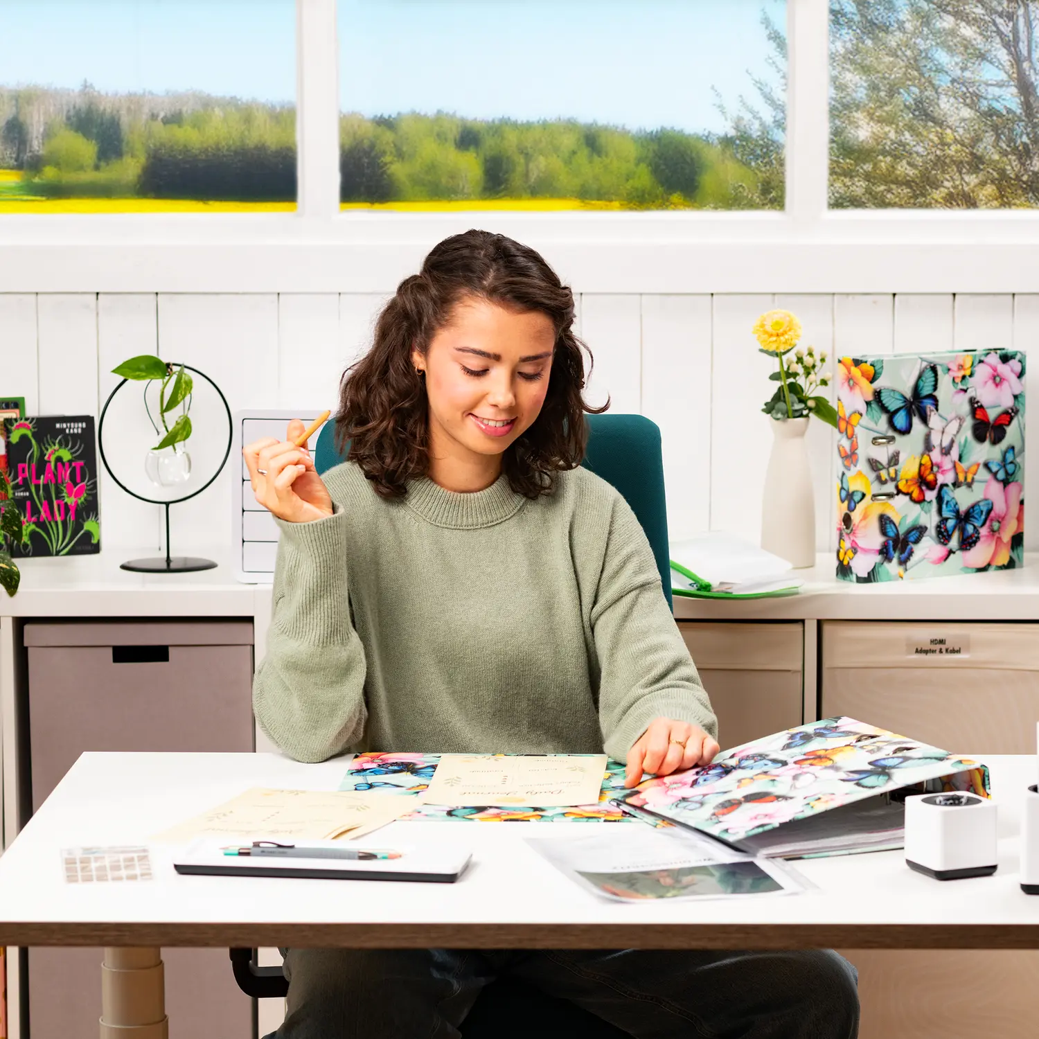 Welcome to the dream garden: delicate flowers combined with elegant butterflies in beautiful pastel colors. This motif file is an absolute eye-catcher, created with great love and attention to detail. The delicate butterflies on the outside of the file almost come to life thanks to the bright colors and shiny foil finish. From bright blue to sunny yellow to delicate pink. Every nature lover's heart will beat faster here. The file is made of sturdy cardboard and features high-quality workmanship, inner print and a sturdy lever arch mechanism. It guarantees optimal storage of documents and transparent sheets for optimal organization at home, at school, at university or in the office. A real eye-catcher on the shelf and on the desk.