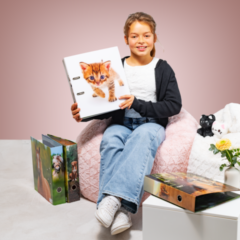 The new motif cats of HERMA's series "Favourite Animals" is perfect for cat lovers who want to express their passion for these wonderful animals. The lovingly designed files not only bring joy to the office or home, but also happiness to everyday life. Made of extra sturdy cardboard with high quality workmanship, they not only provide ideal storage for important documents, but are also an inspiring eye catcher on the desk or shelf. The charming cat motifs inspire and show the enthusiasm for these faithful companions. A personal favourite animal file ensures that organising is done with a smile for order that brings joy.