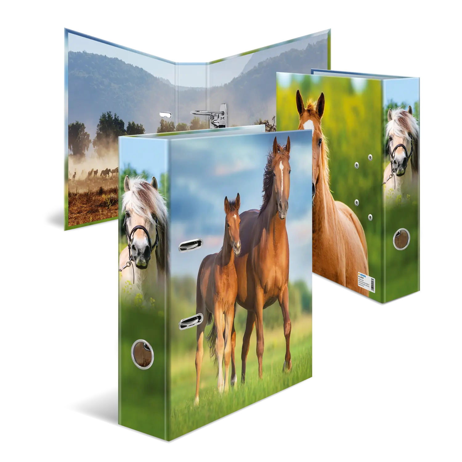 The motif horses of HERMA's series "Favourite Animals" invites you to discover the peace and beauty of horses. These unique motif files capture the gentle grace of animals and bring a touch of harmony to eve ryday life. Made of extra sturdy cardboard with high quality workmanship, they not only provide ideal storage for important documents, but are also an inspiring eye catcher on the desk or shelf. The robust lever mechanism ensures that everything stays firmly in place. The elegance of these wonderful animals is inspiring and transforms organising into a creative experience full of life. A personal favourite animal file ensures order that is both practical and inspiring.