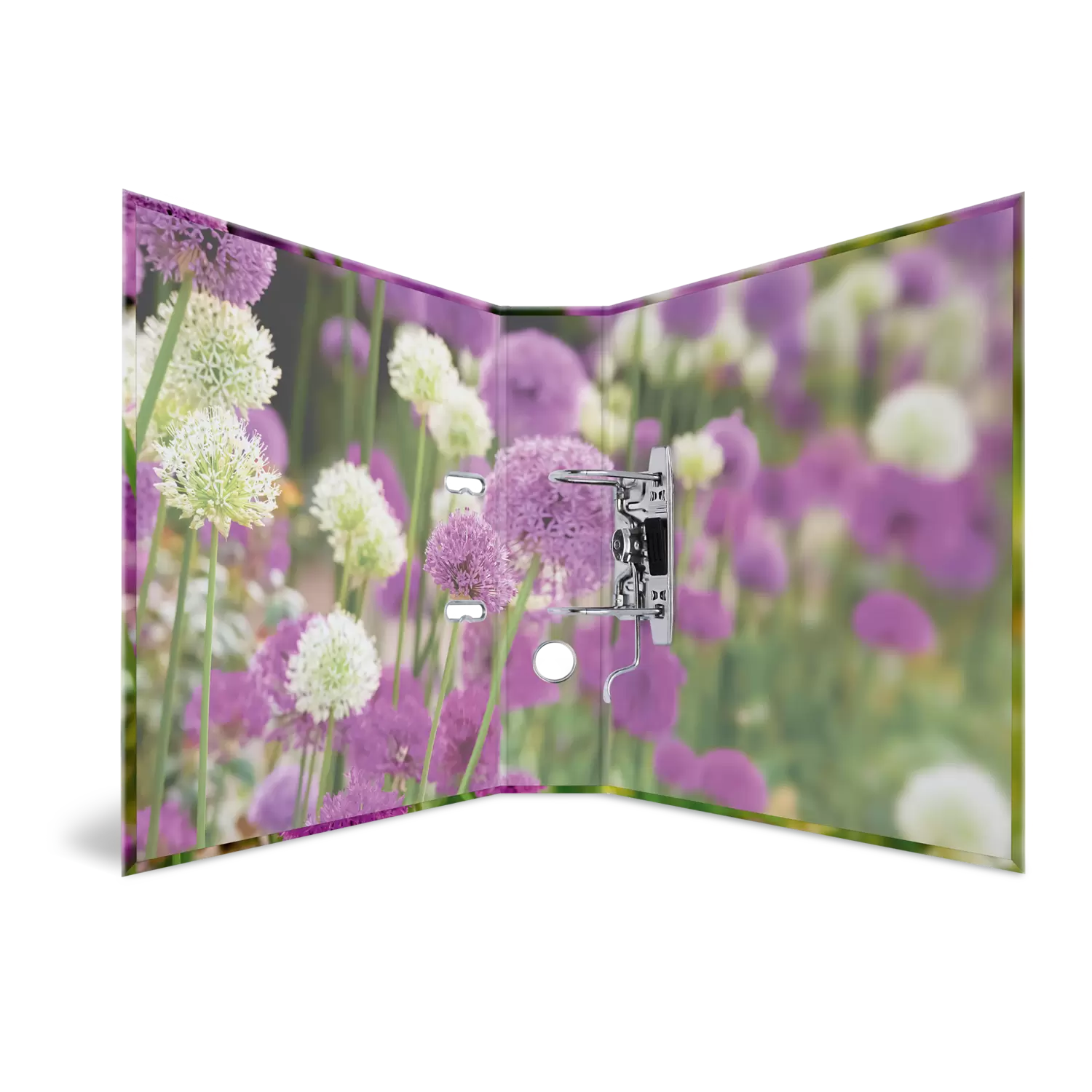 With the HERMA motif file Purple Sensation of the series Flowers, you can bring the beauty of the colourful world of flowers into your home, office or school. Flowers are not the queens of flora for nothing: they have always fascinated. They are surrounded by that air of grace and loveliness that only floral beauties have. Each species has its colours, its fragrance, its aura, delicate or strong, discreet or splendid, always special and unique: a gift of colourful diversity, a delight for the senses. Flower balls in intense white and violet colour, a delight for eyes and soul.The special lever arch mechanism with metal compressor bar keeps the contents of the file organised and stable. The wide spine guarantees stability on the shelf and sufficient space for many documents in formats up to A4.