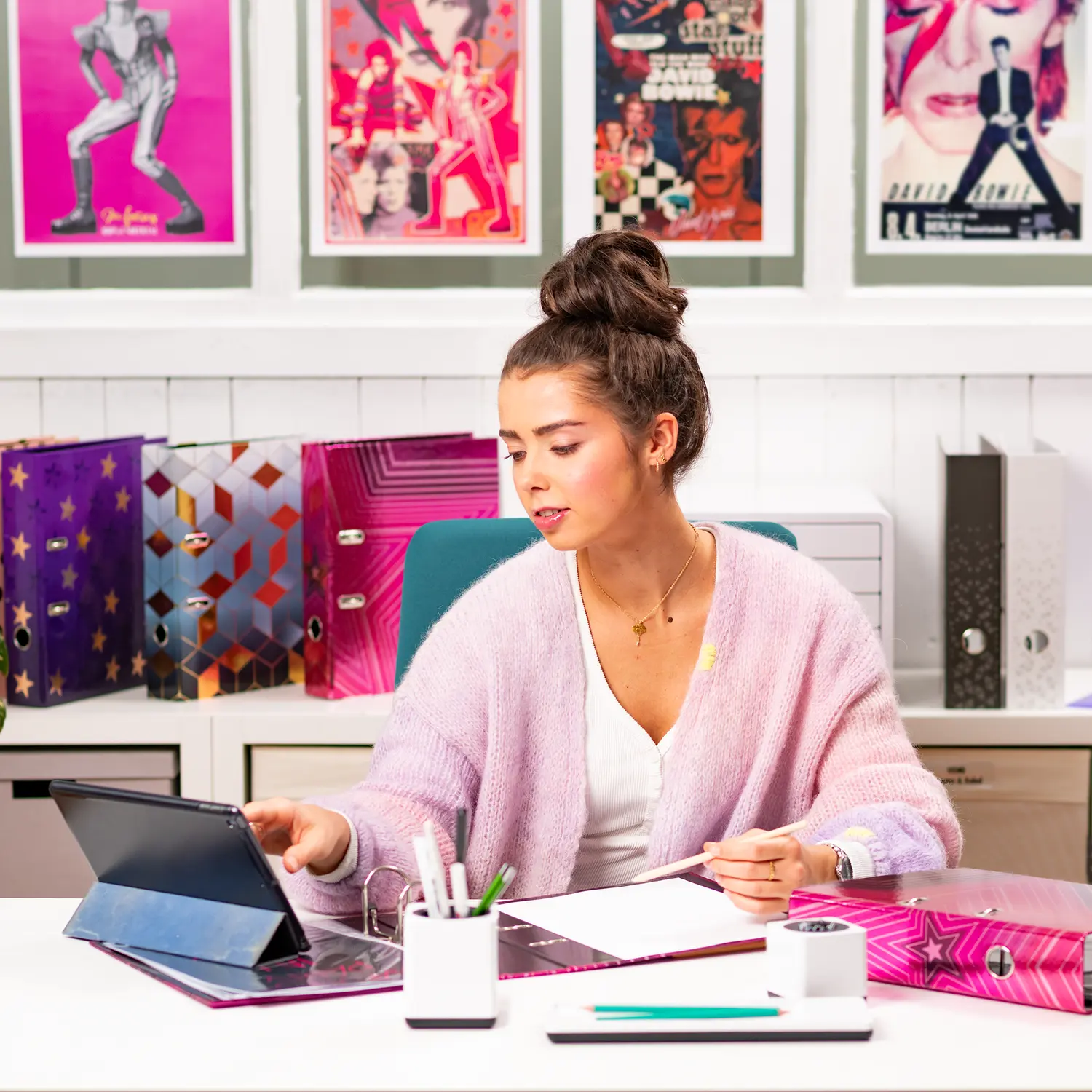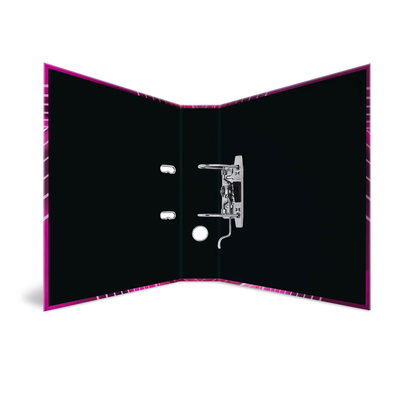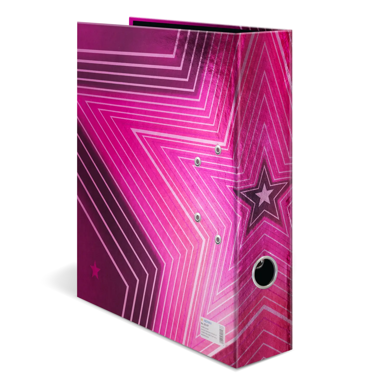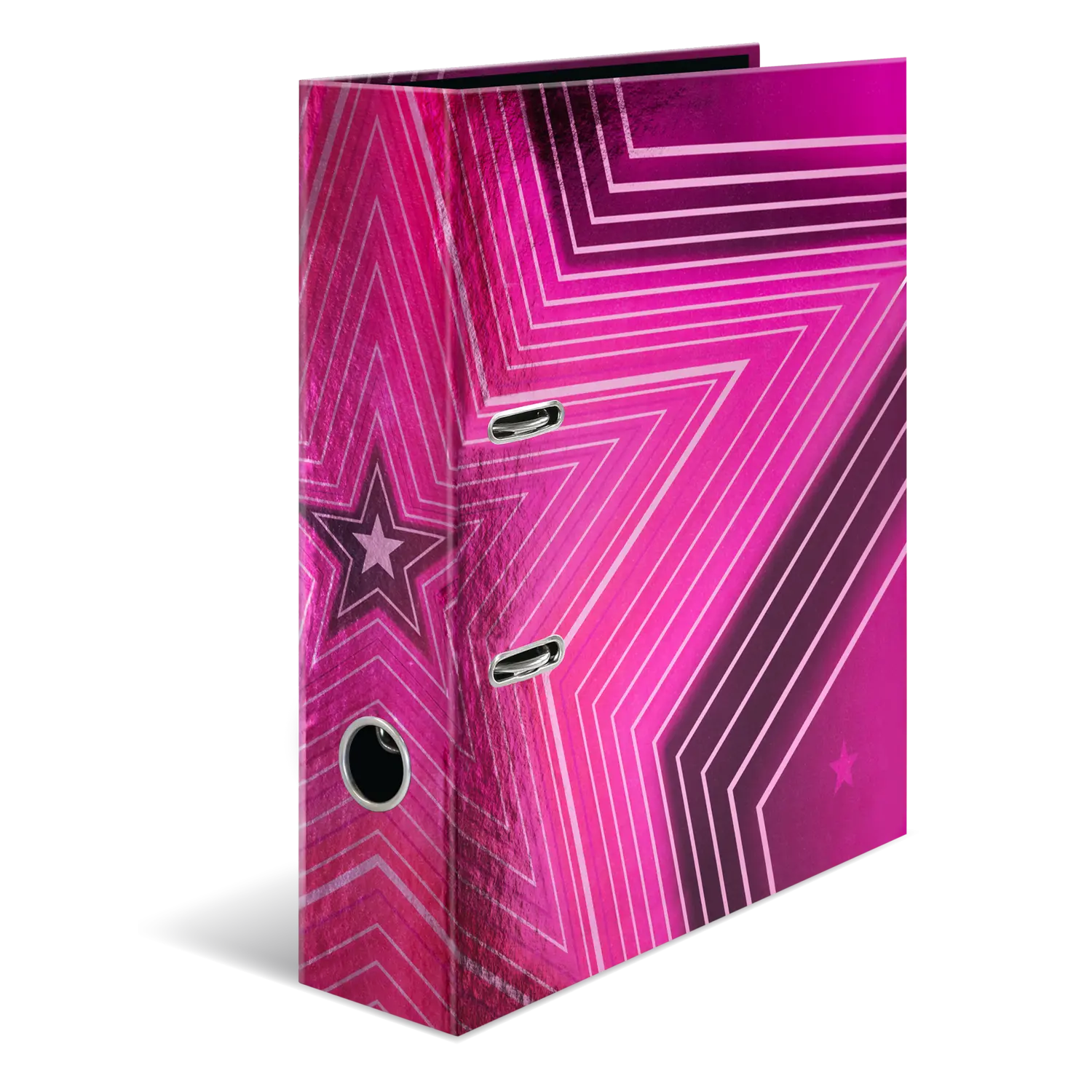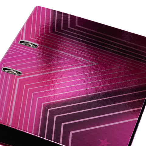 The Venus motif file is something very special, combining design and functionality at the highest level. The cool, bright pink design, dotted with almost luminous stars, is an absolute highlight and definitely an eye catcher! The file is made of high quality cardboard, finished with a special printing process on mirror foil, and is easy to take out and put back thanks to the practical thumb hole. The special lever arch mechanism with metal compressor bar ensures that the contents of the file are kept neat and stable. The wide spine guarantees stability on the shelf and sufficient space for many documents in formats up to A4.
