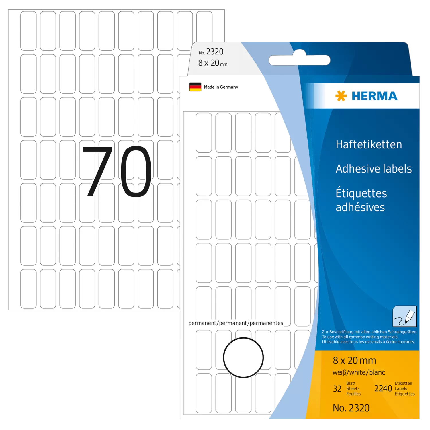 Multi-purpose labels, 8 x 20 mm, white, permanent adhesion, for hand lettering