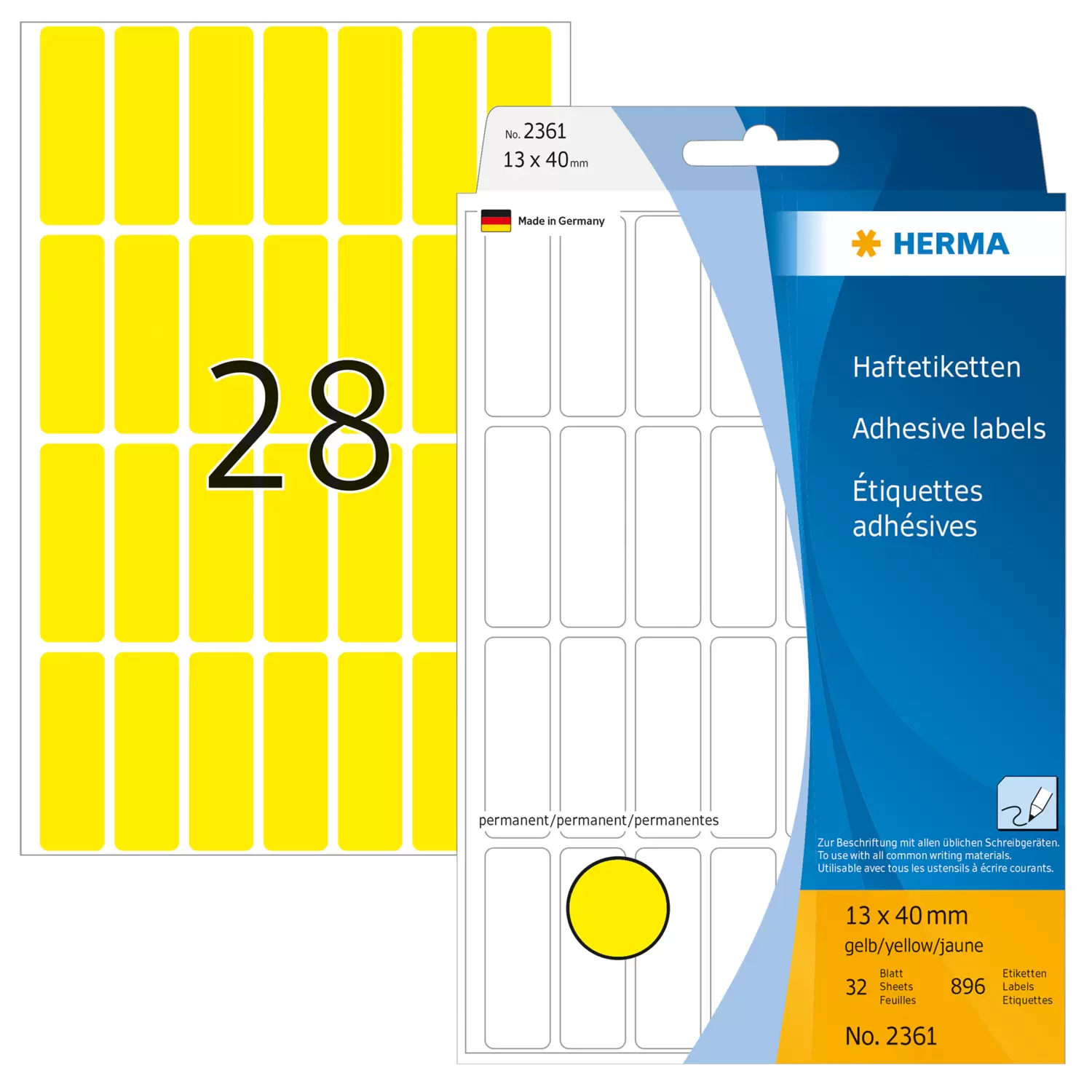 Multi-purpose labels, 13 x 40 mm, yellow, permanent adhesion, for hand lettering