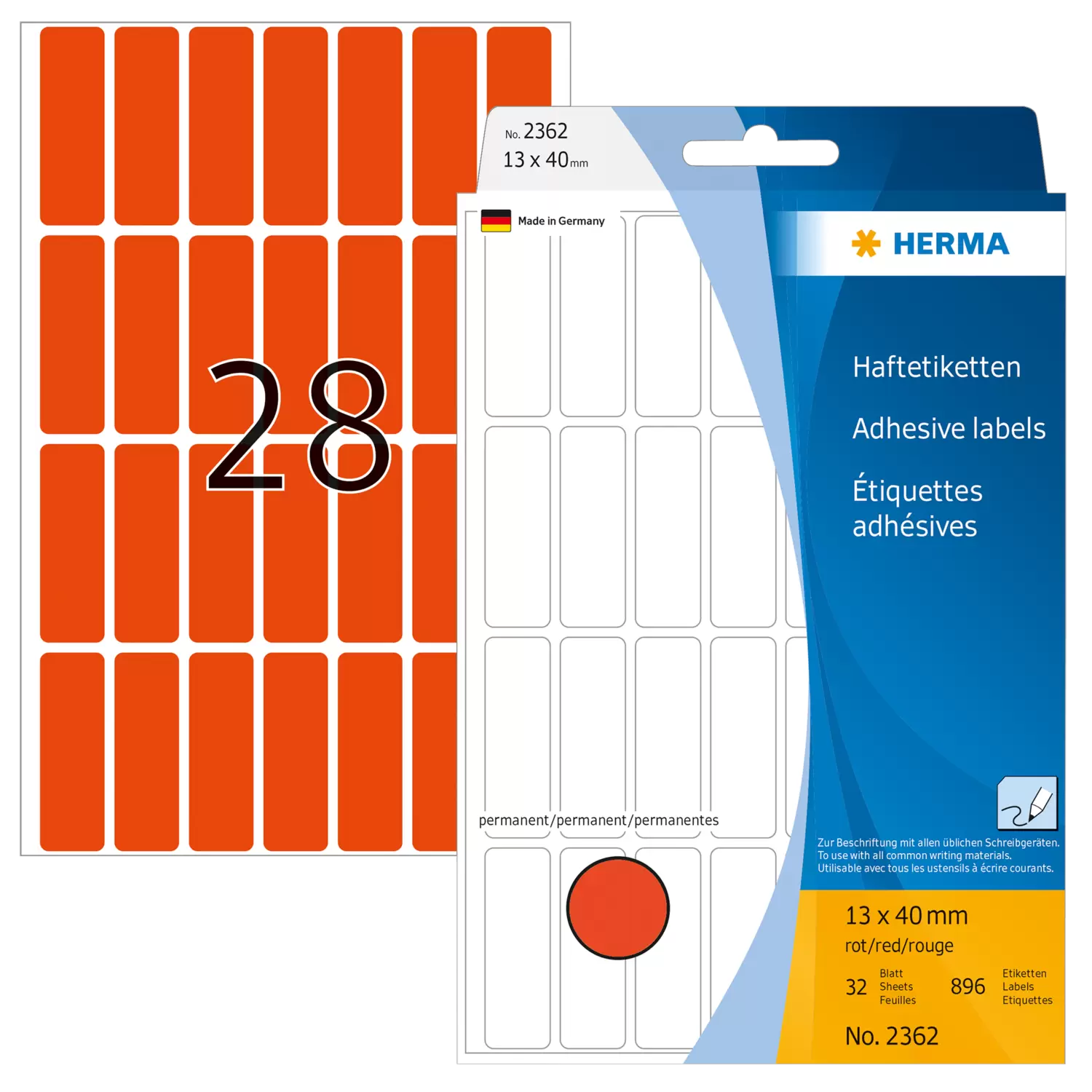Article number2360 Format13,0 x 40,0 mm Content896 Labels / 32 Sheets