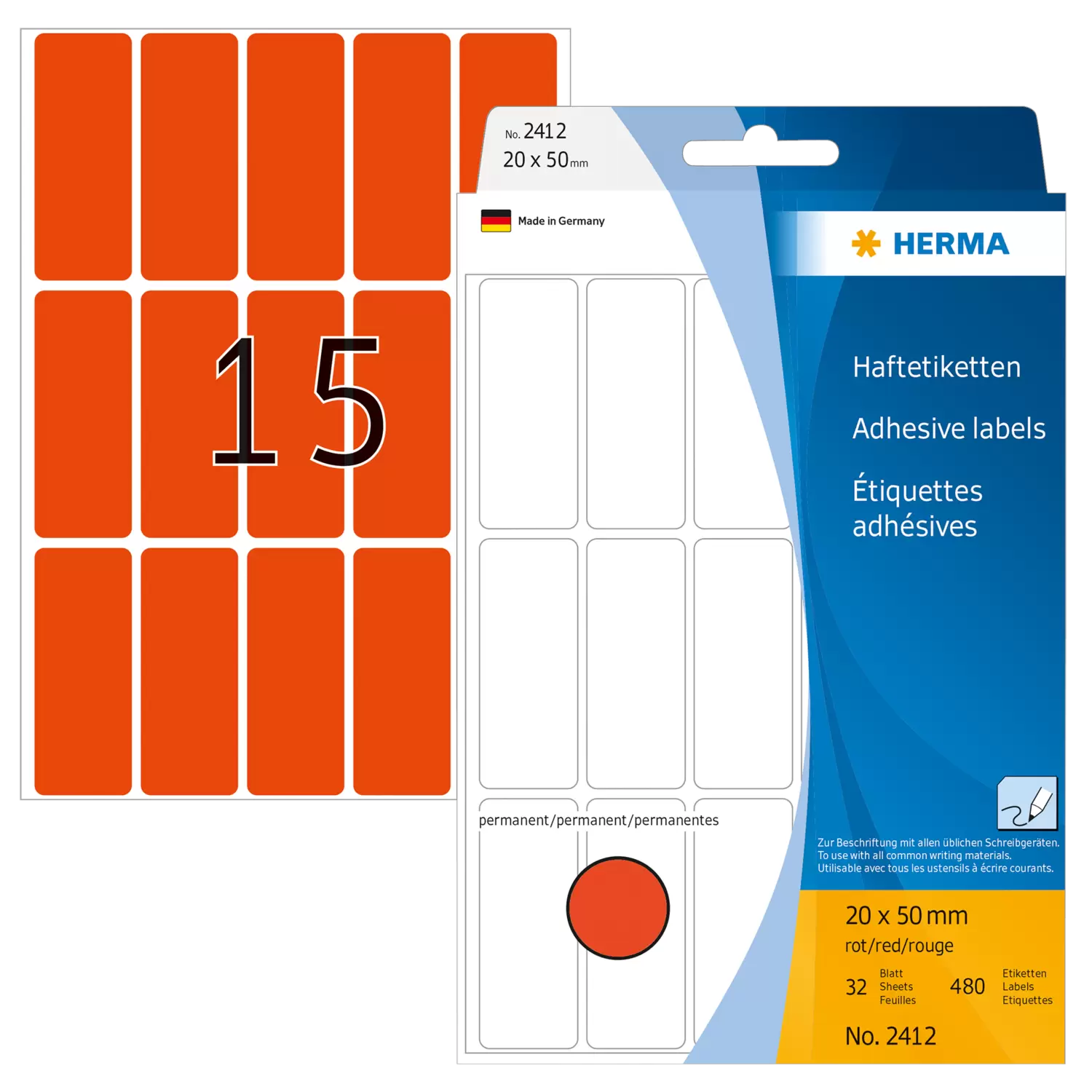 Multi-purpose labels, 20 x 50 mm, red, permanent adhesion, for hand lettering