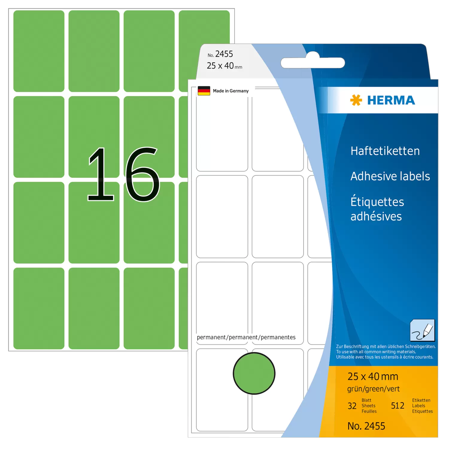 Multi-purpose labels, 25 x 40 mm, green, permanent adhesion, for hand lettering