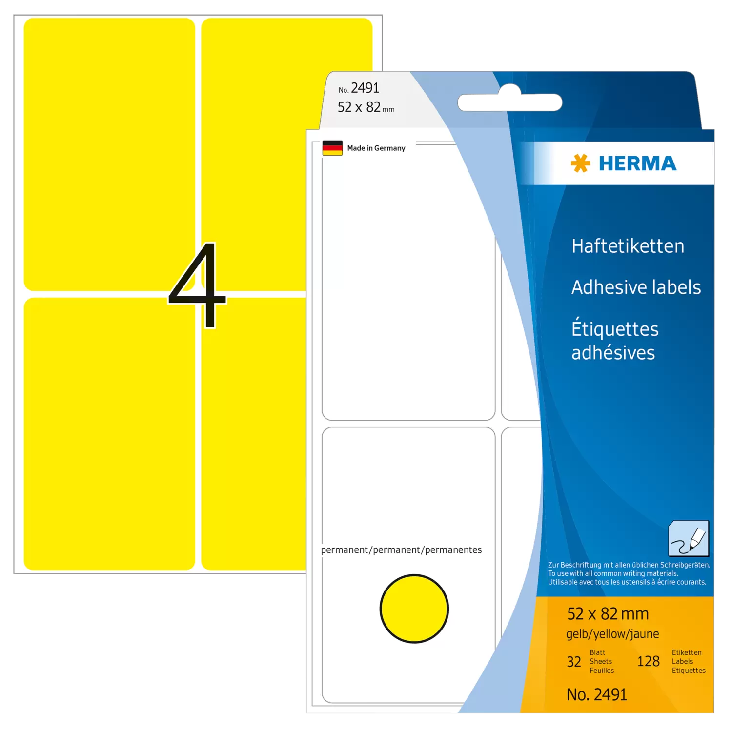 Multi-purpose labels, 52 x 82 mm, yellow, permanent adhesion, for hand lettering