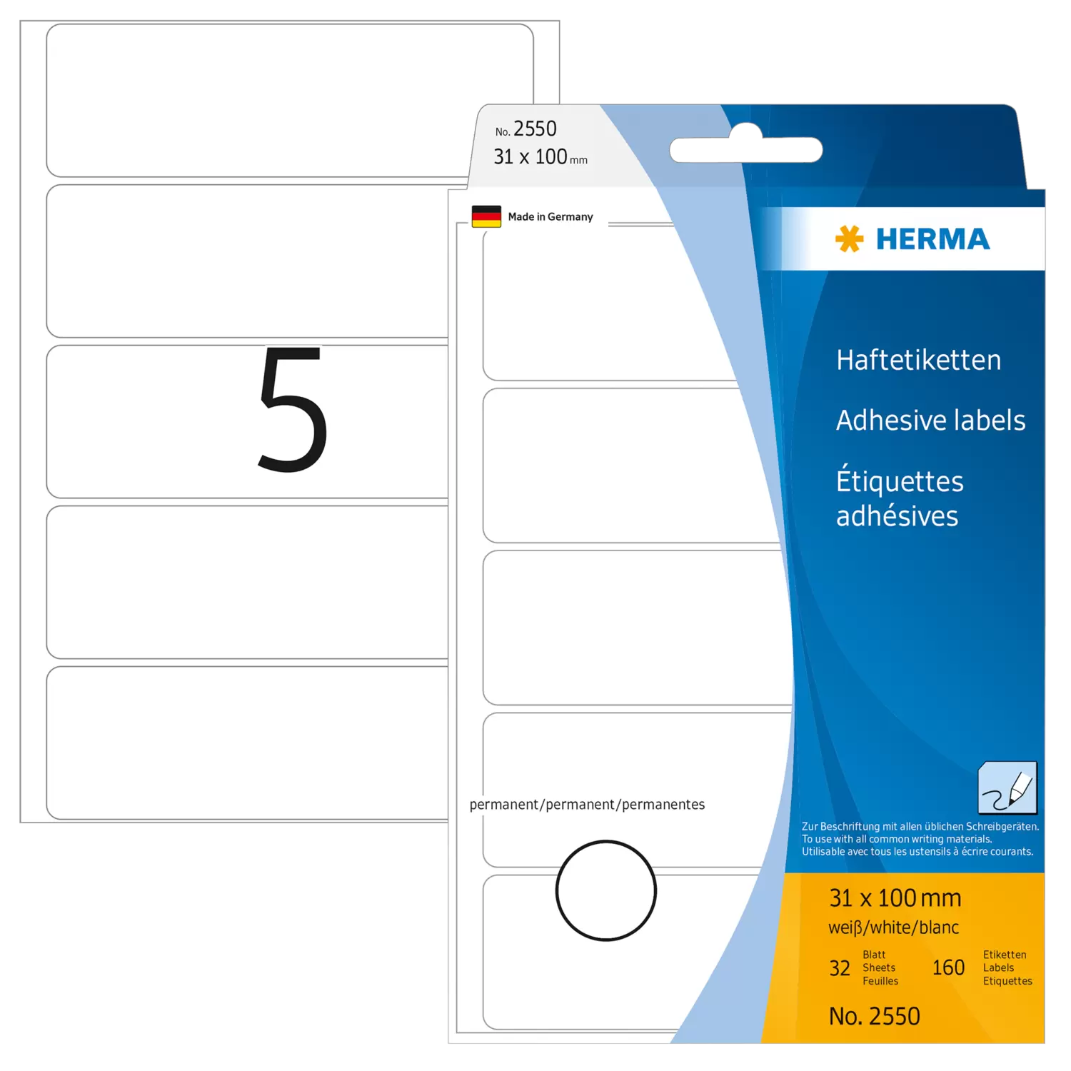 Multi-purpose labels, 31 x 100 mm, white, permanent adhesion, for hand lettering