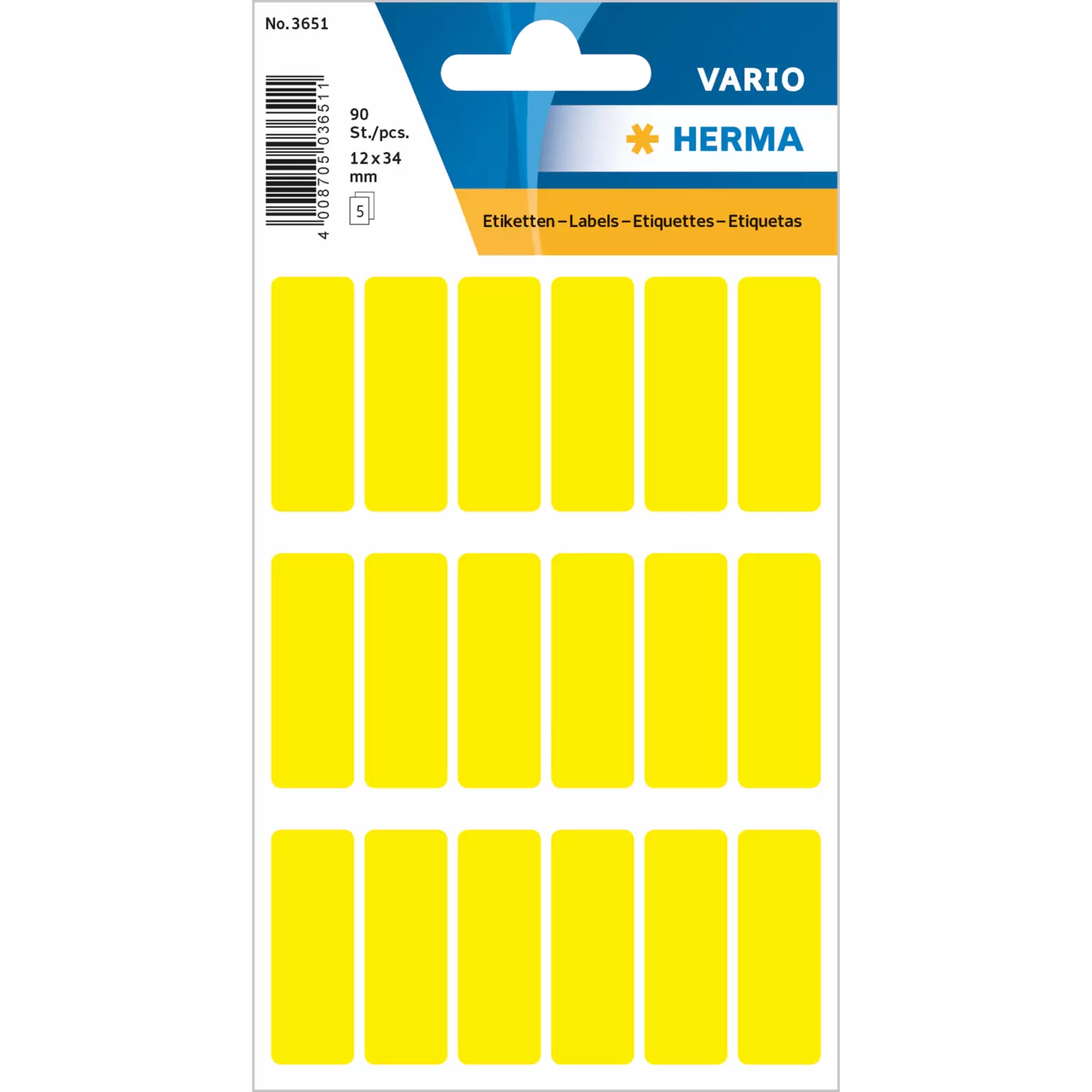 Multi-purpose labels, 12 x 34 mm, yellow, permanent adhesion, for hand lettering