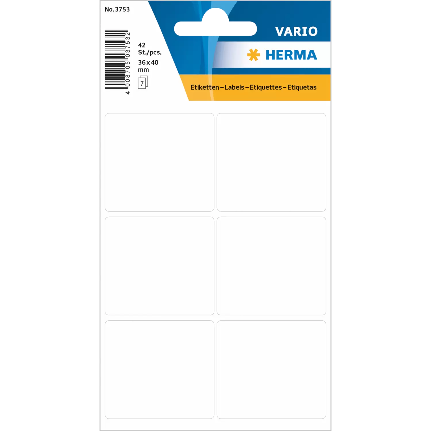 Multi-purpose labels, 36 x 40 mm, white, permanent adhesion, for hand lettering